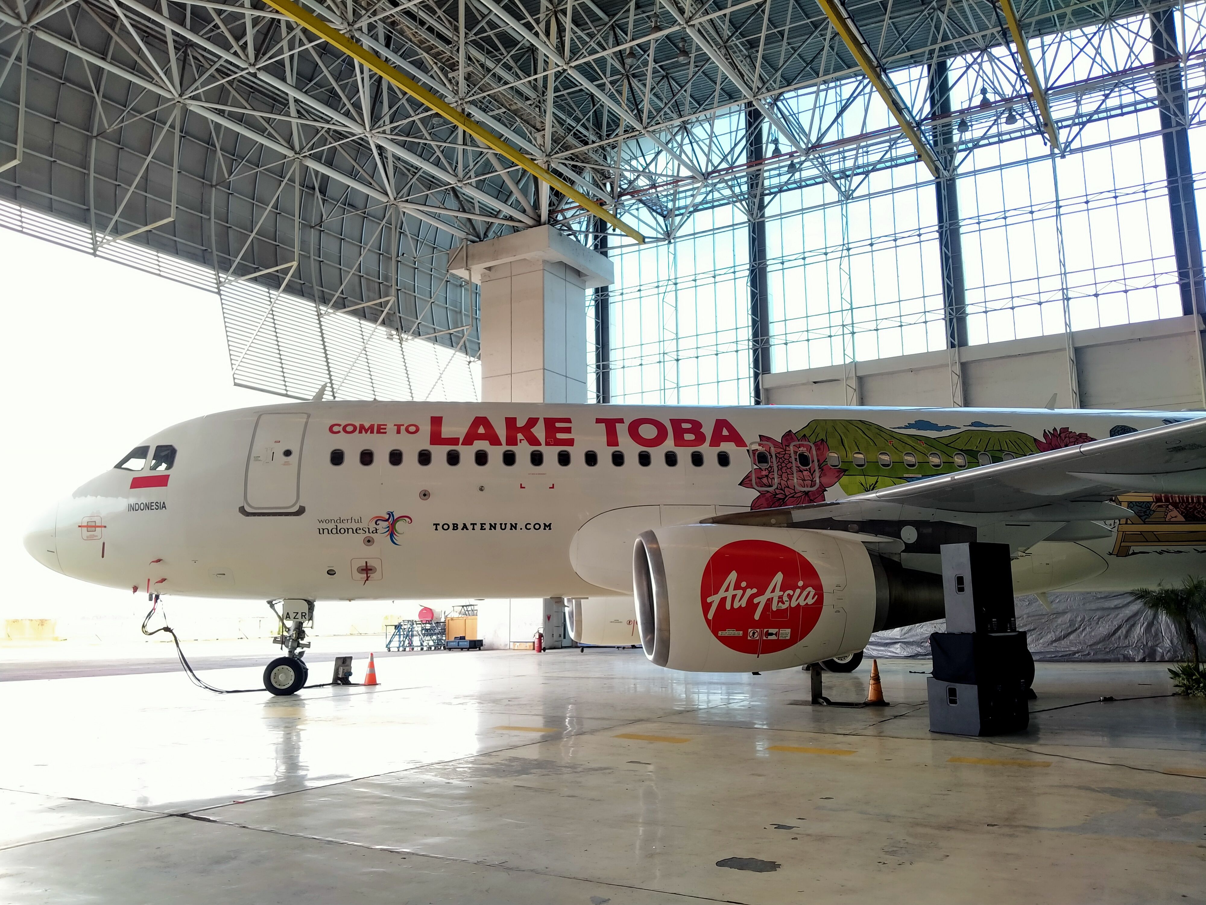 Foto : Dokumentasi Isty/TVRI. Pesawat Indonesia AirAsia dengan livery bernuansa Danau Toba.