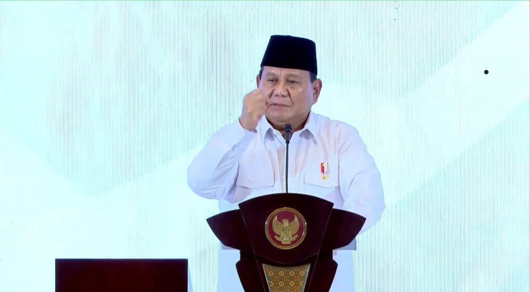 Presiden Prabowo Subianto saat memberikan sambutan dalam Musyawarah Nasional (Munas) Konsolidasi Persatuan Kadin Indonesia di The Ritz-Carlton, Mega Kuningan, Jakarta, Kamis (16/1/2025).