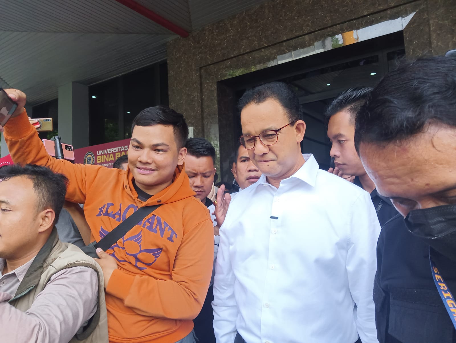 Kemudian, setelah selesai dari kampus Universitas Bina Bangsa, Anies Baswedan langsung menuju gedung gelanggang Remaja, di stadion Maulana Yusuf, Ciceri Kota Serang.