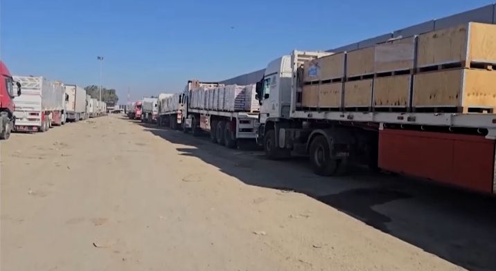 Jakarta, tvrijakartanews - Konvoi truk bantuan di kota perbatasan Mesir, Rafah, bersiap pada Sabtu, 18 Januari, untuk menyeberang ke Gaza segera setelah perbatasan dibuka, menyusul pengumuman gencatan senjata pada Rabu 15 Januari lalu.