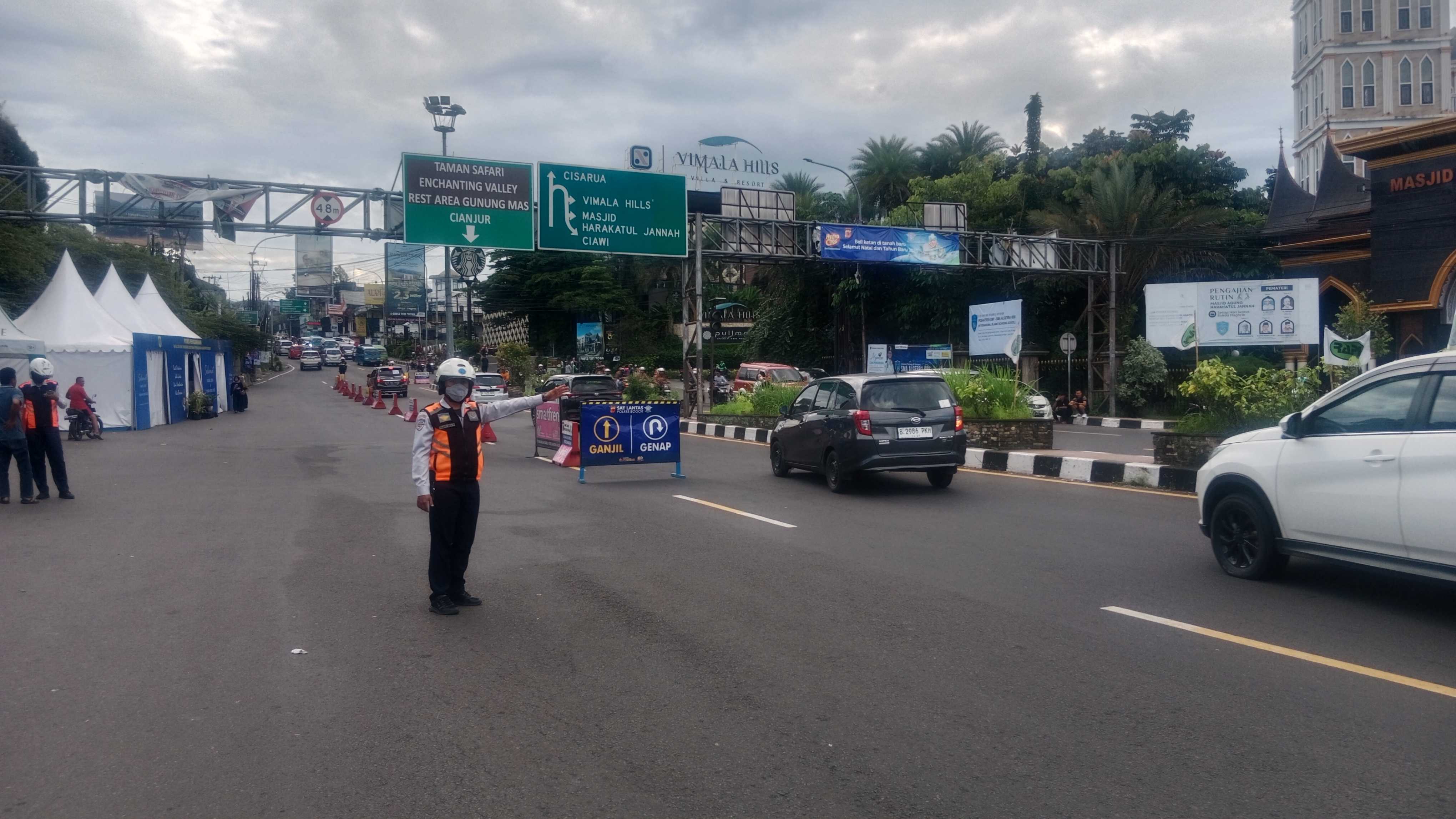 Penerapan rekayasa kendaraan berupa ganjil genap di kawasan wisata Puncak, Bogor, Jawa Barat / Foto: Dimas Yuga Pratama