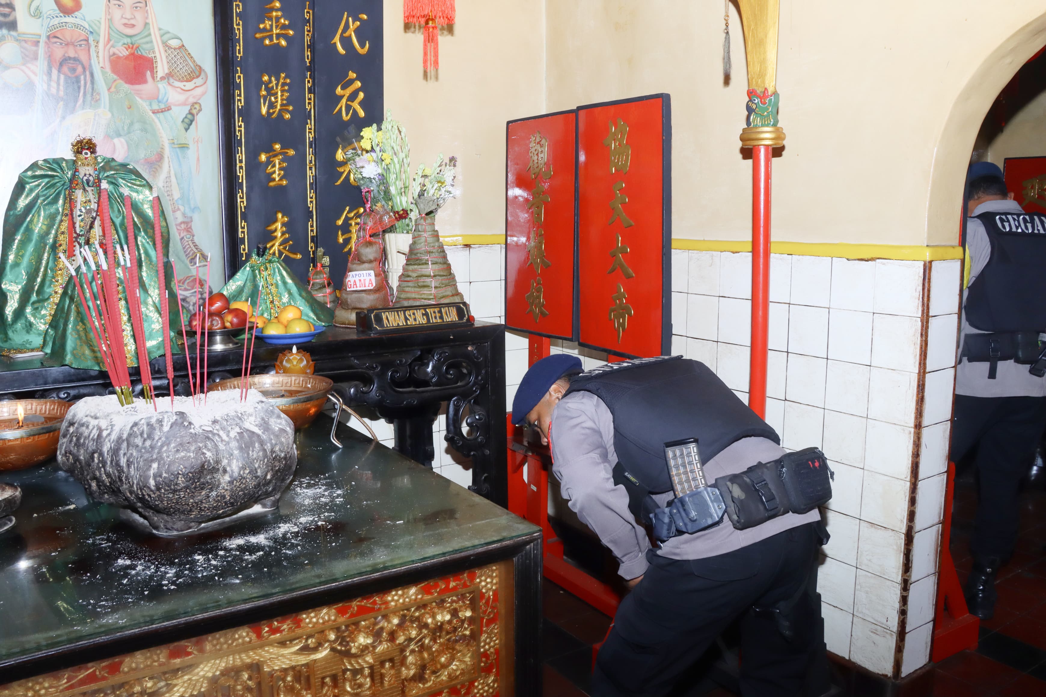 Foto : Dokumentasi Istimewa. Polres Metro Tangerang Kota mengerahkan tim jibom untuk sterilisasi vihara saat imlek