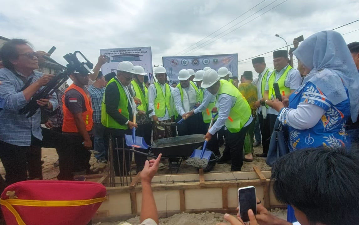 Suasana peletakan batu pertama pembangunan dapur umum makan bergizi gratis di Ponpes Al-Aqsho Serang