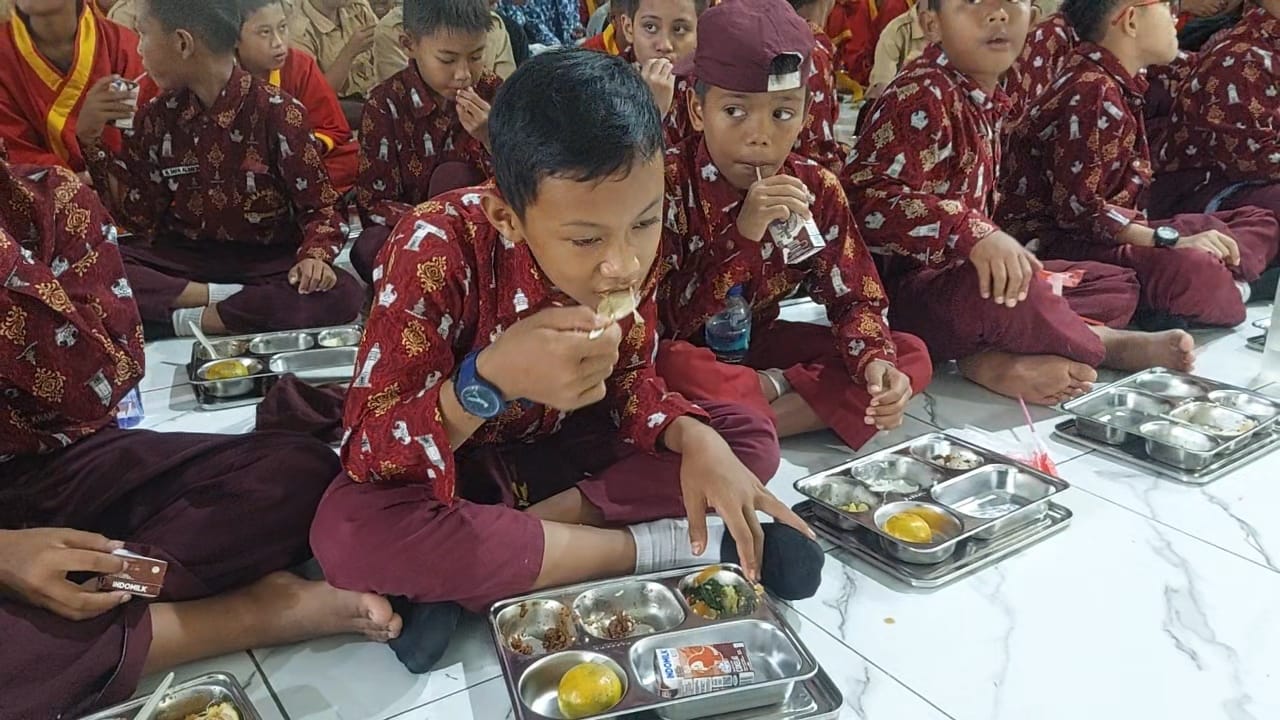 Di tempat yang sama, siswa Kelas 5 dari SDN Margasana, Akap mengaku lahap saat menyantap makanan dari program MBG.