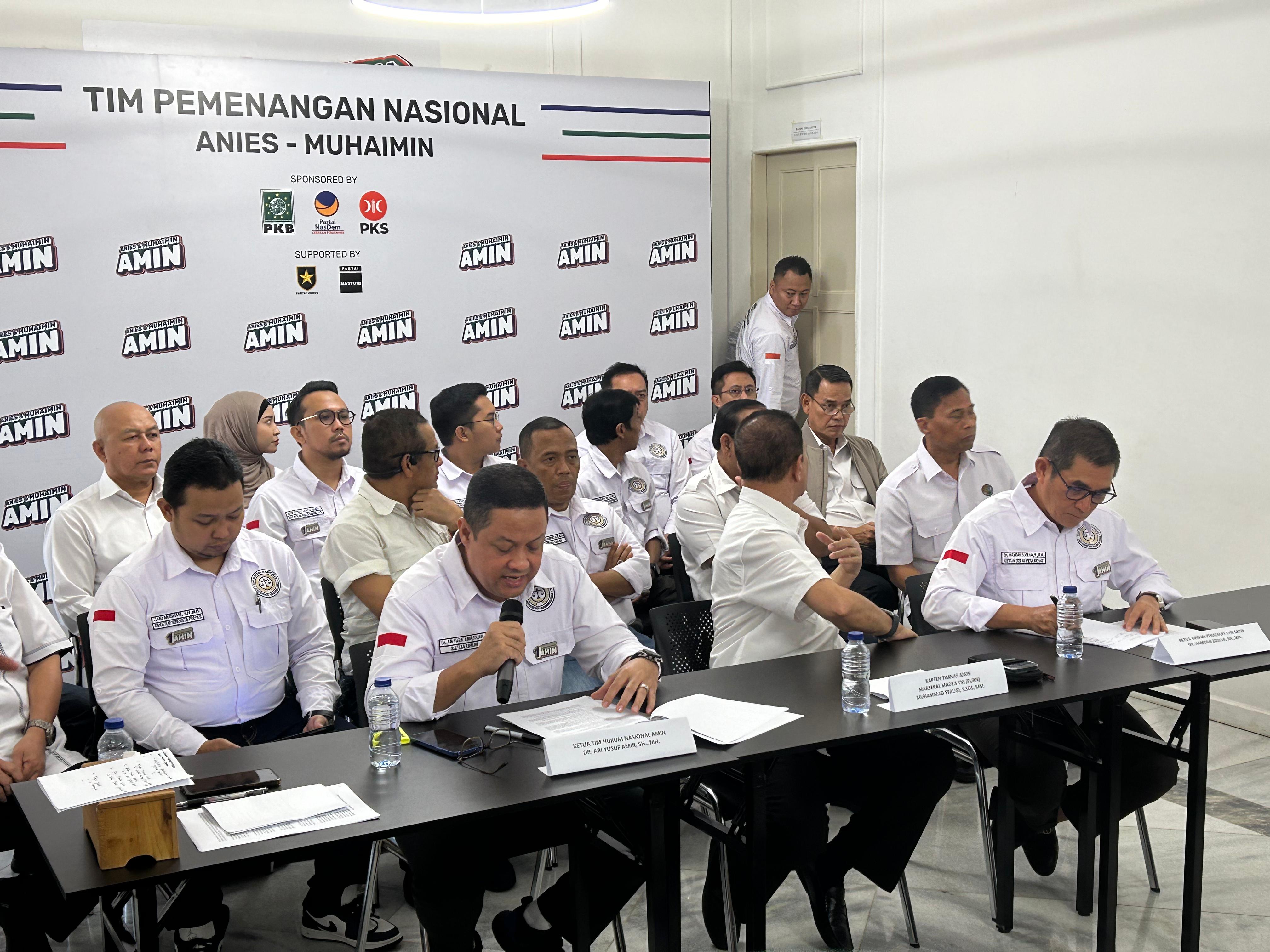 Ketua Tim Hukum Nasional AMIN, Ari Yusuf Amir Saat memimpin konferensi pers di Menteng, Jakarta Pusat. Foto: M Julnis Firmansyah