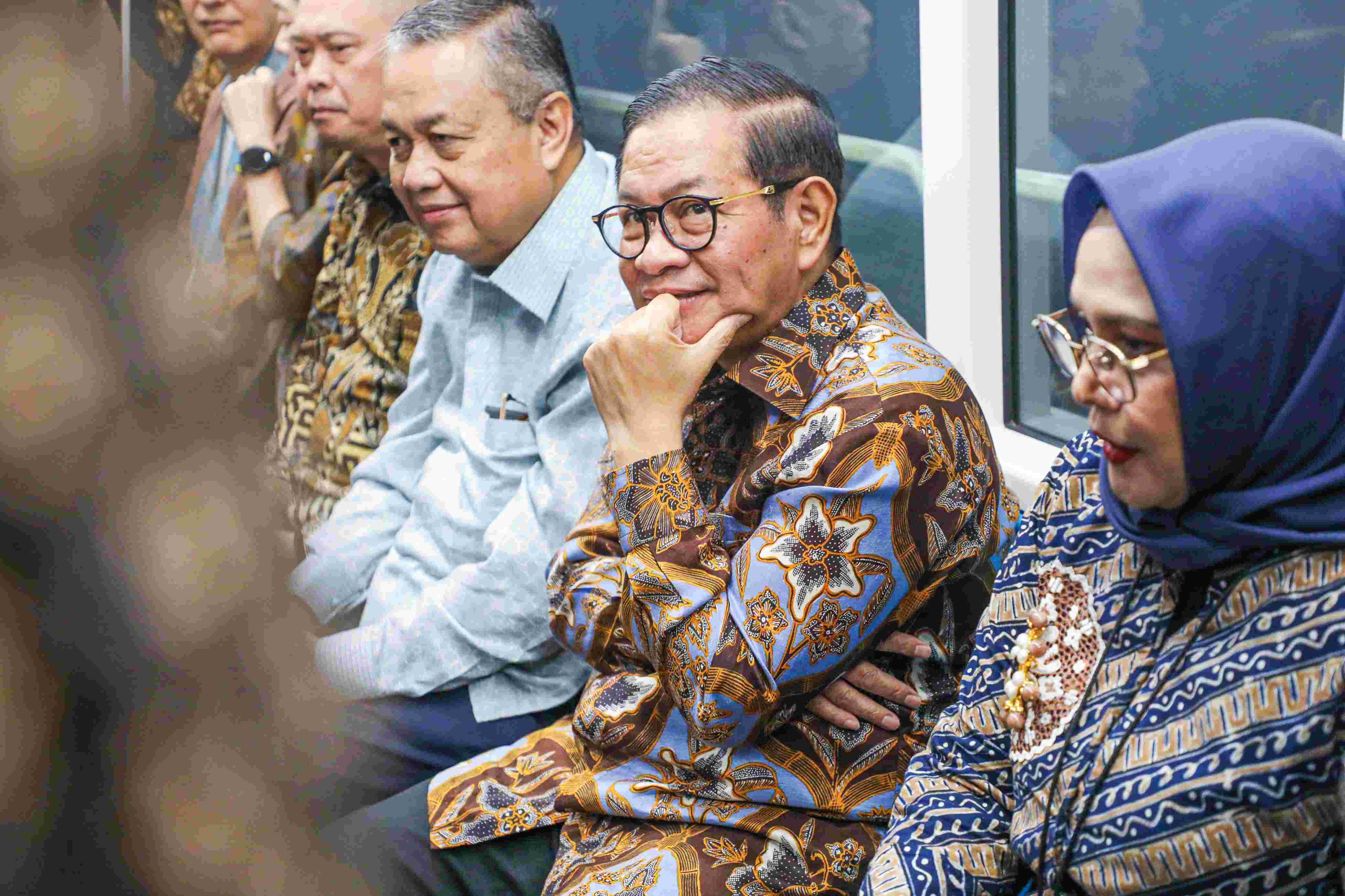 Gubernur DKI Jakarta Pramono Anung menghadiri peluncuran Quick Response Code Indonesian Standard Tanpa Pindai (QRIS TAP) di Stasiun MRT Bundaran Hotel Indonesia (HI), Jakarta Pusat, pada Jumat (14/3). Turut hadir di acara ini, Menteri Perhubungan RI Dudy Purwagandhi dan Gubernur Bank Indonesia (BI) Perry Warjiyo.