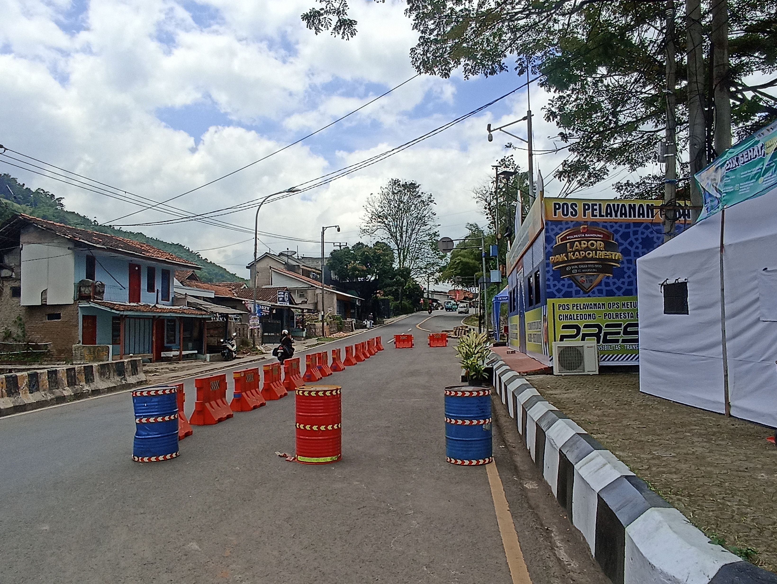 Pengamatan dari posko pengamanan Cikaledong, Polresta Bandung, Jawa Barat, Rabu (26/3/2025), terlihat sejumlah petugas tengah memantau arus lalu lintas.
