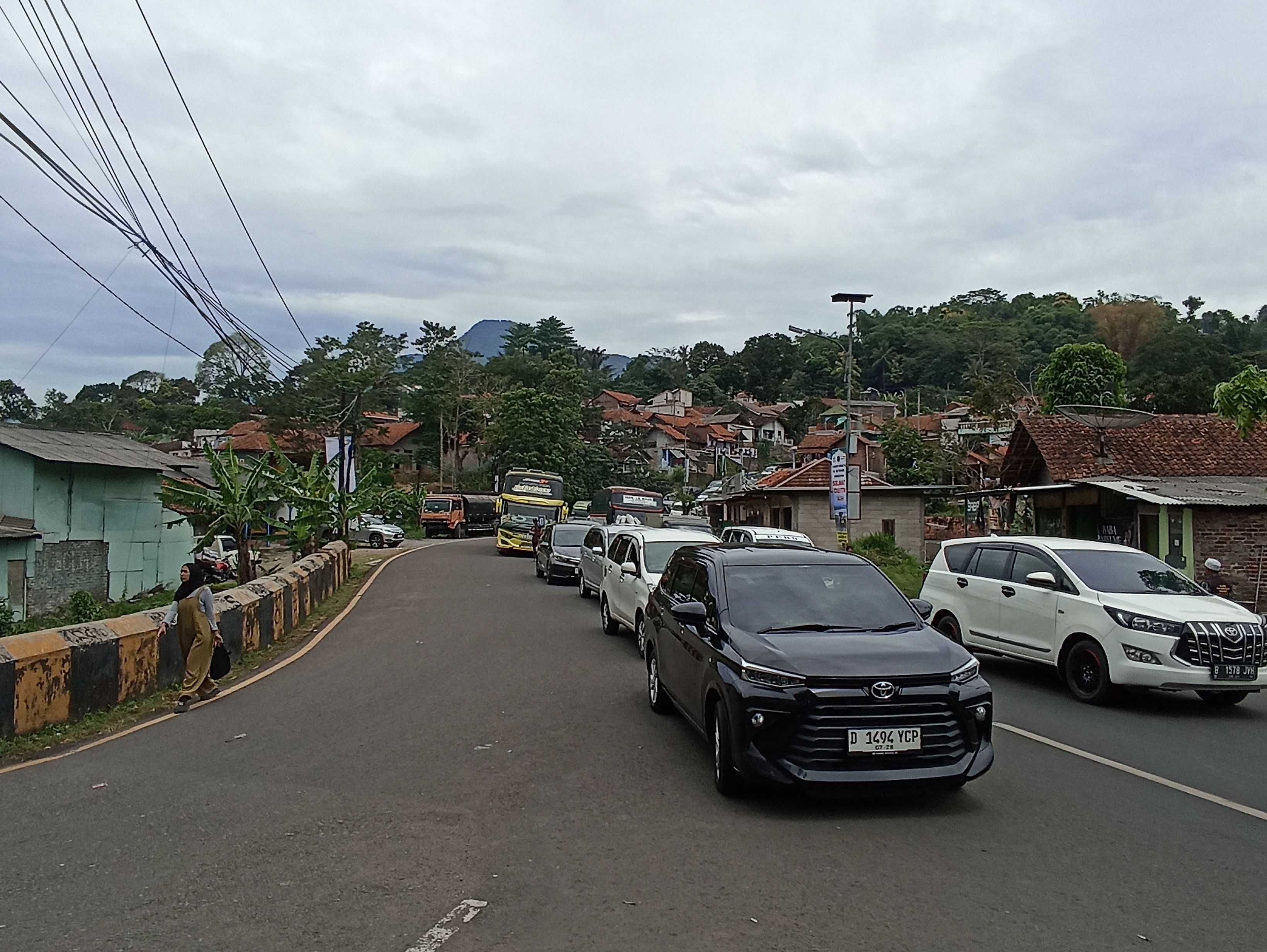 Kondisi arus lalu lintas di Posko Cikaledong, Kawasan Simpang Nagreg, Jawa Barat terpantau padat merayap. (Tvrijakartanews/ John Abimanyu)