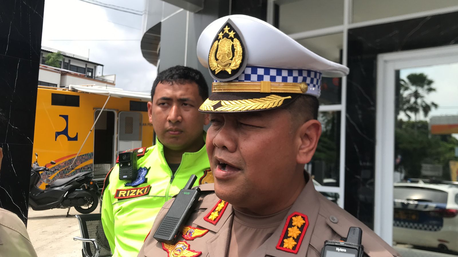 Dirlantas Polda Jabar, Kombes Pol Dodi Darjanto saat mendampingi Kapolda Jabar Irjen Pol Akhmad Wiyagus di Pos Pengamanan Terpadu Simpang Gadog, Ciawi, Kabupaten Bogor, Jawa Barat, Jumat, 4 April 2025. Foto : Istimewa