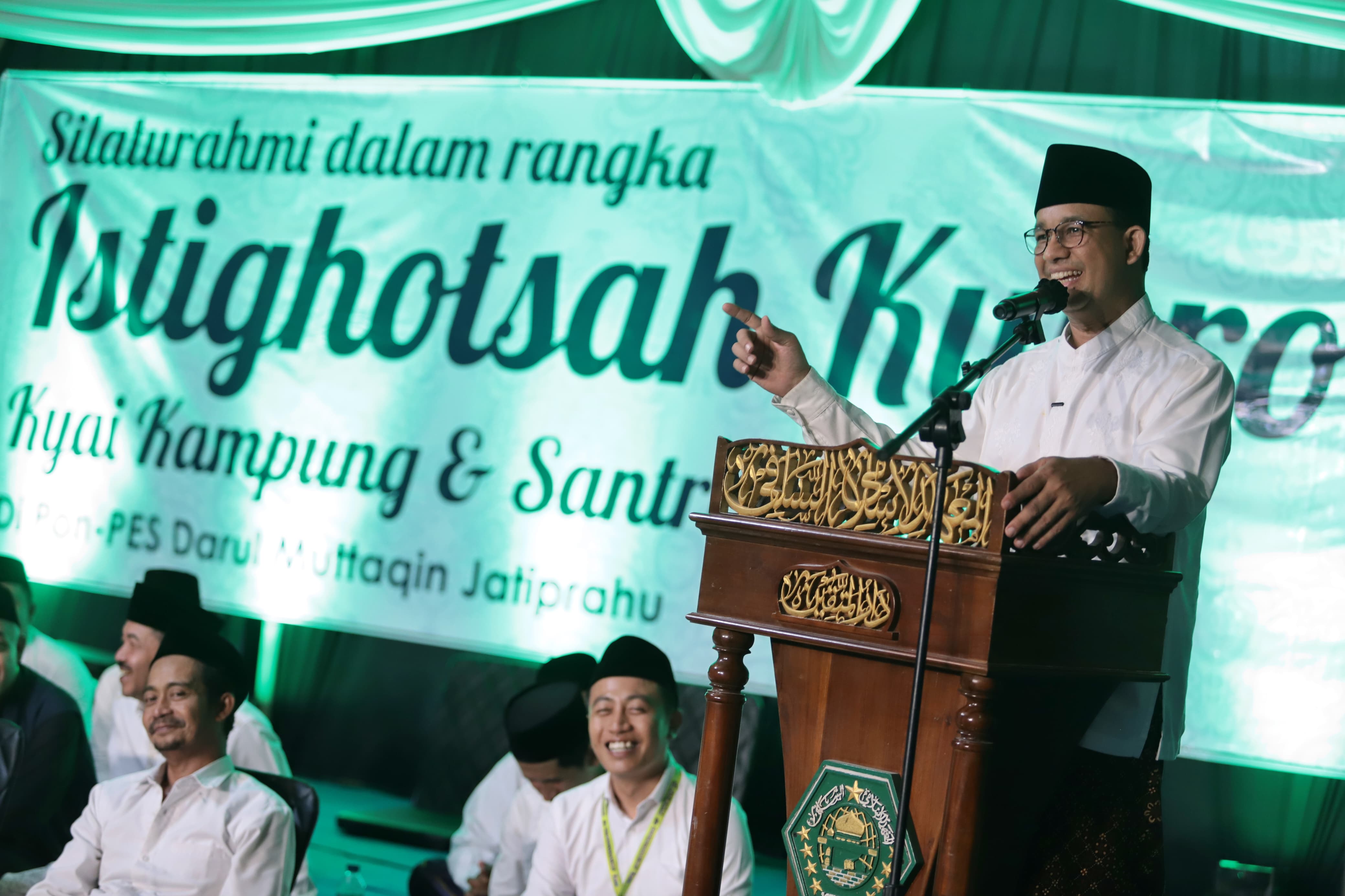 Anies Baswedan saat menghadiri Istighotsah Kubro Kiai Kampung dan Santri Trenggalek. Foto Timnas AMIN