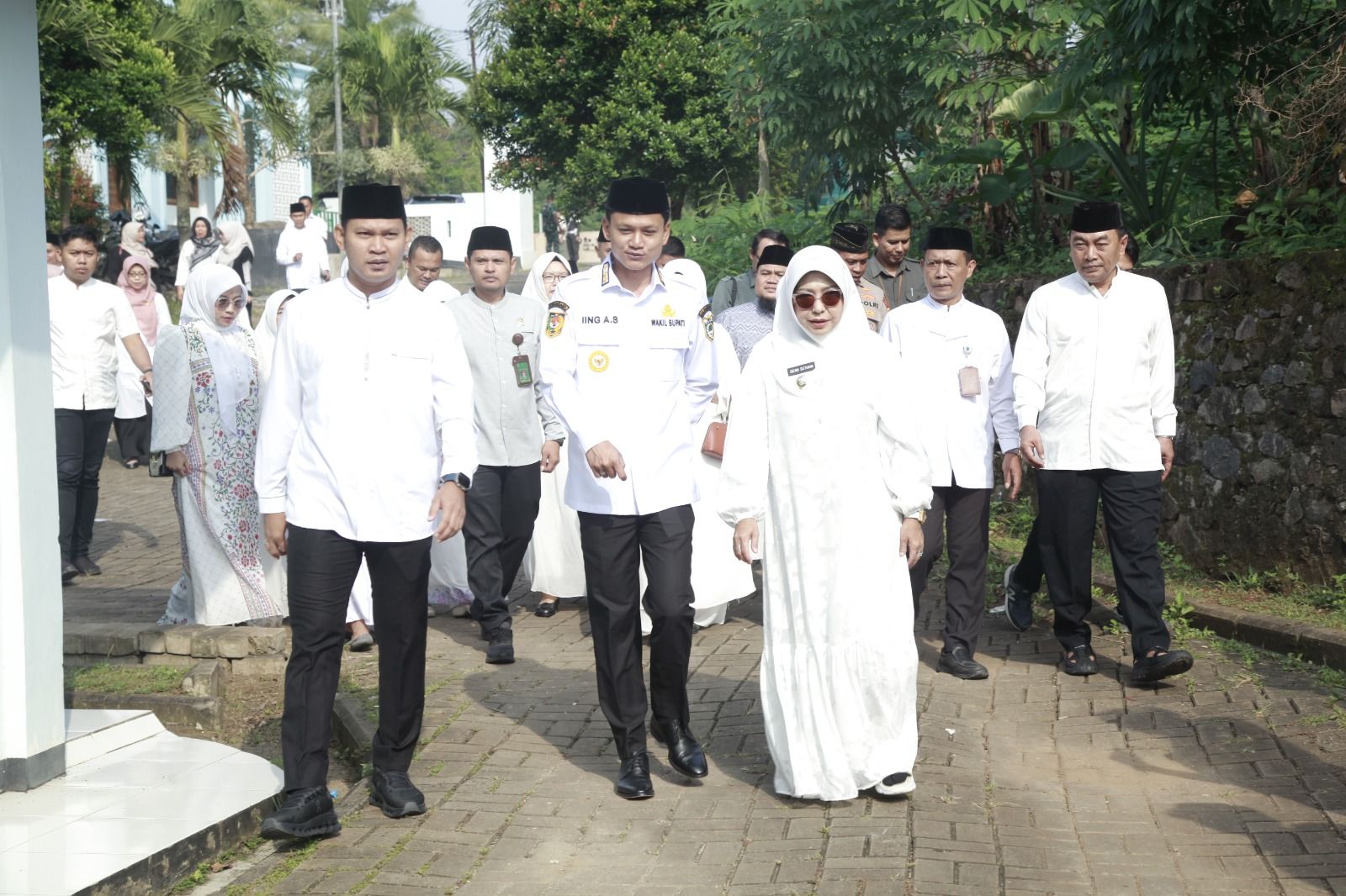 Bupati dan wakil bupati Pandeglang saat lakukan ziarah kubur ke makam dalam rangka rangkaian HUT Pandeglang 151 ( sumber : Tb Agus Jamaludin )