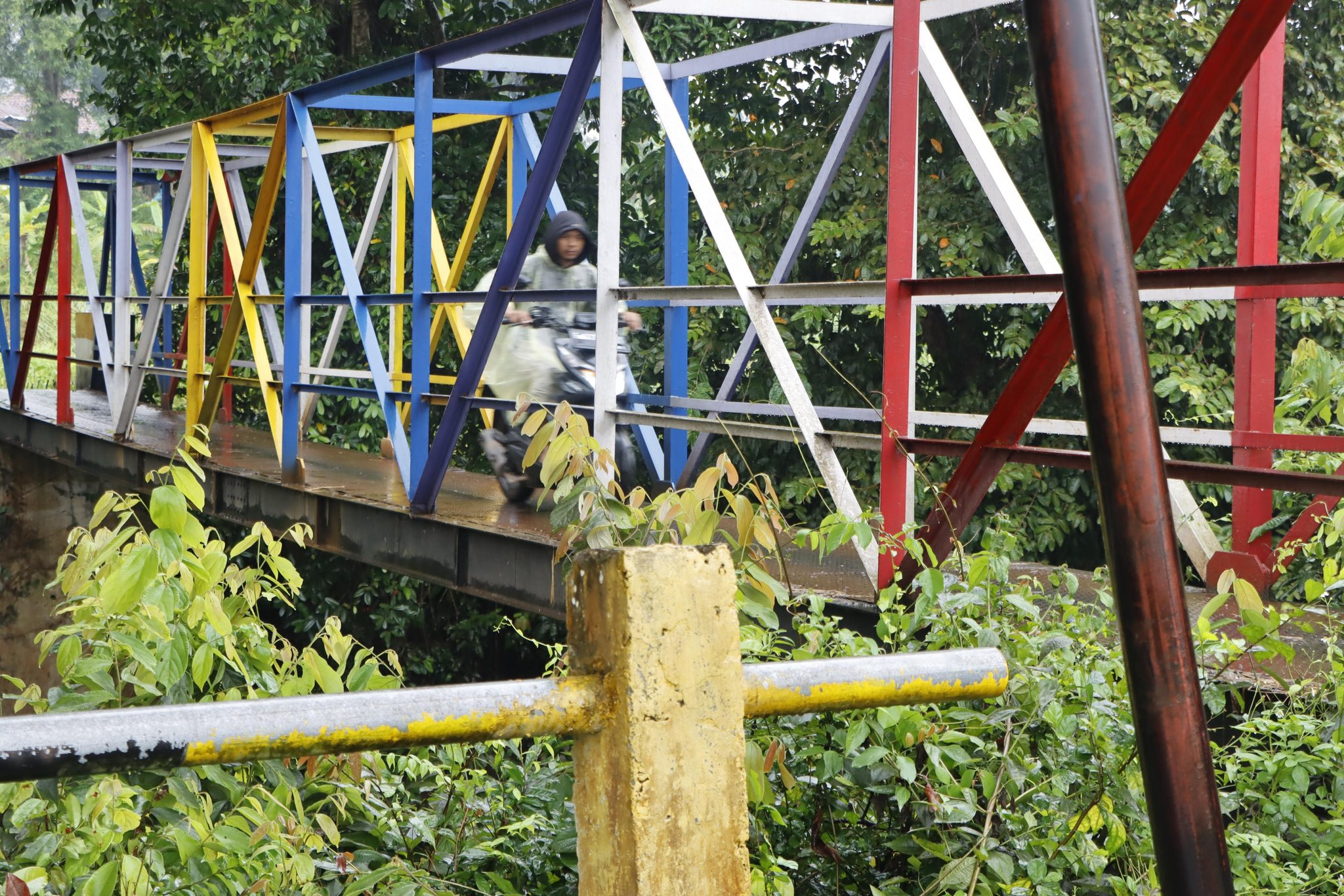 Foto : Dokumentasi Humas Pemkab Tangerang/ Kondisi jembatan Parung Lawang saat ini, hanya mampu dilewati oleh kendaraan roda dua.