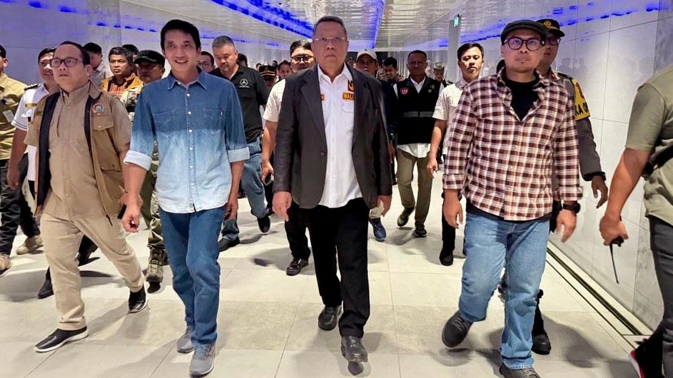 Wali Kota Tangsel Benyamin Davnie (Tengah) Didampingi Wakil Wali Kota Pilar Saga Ichsan (Kanan) dan Unsur Forkopimda Saat Memantau Masyarakat Merayakan Malam Pergantian Tahun di Bilangan Pondok Aren.