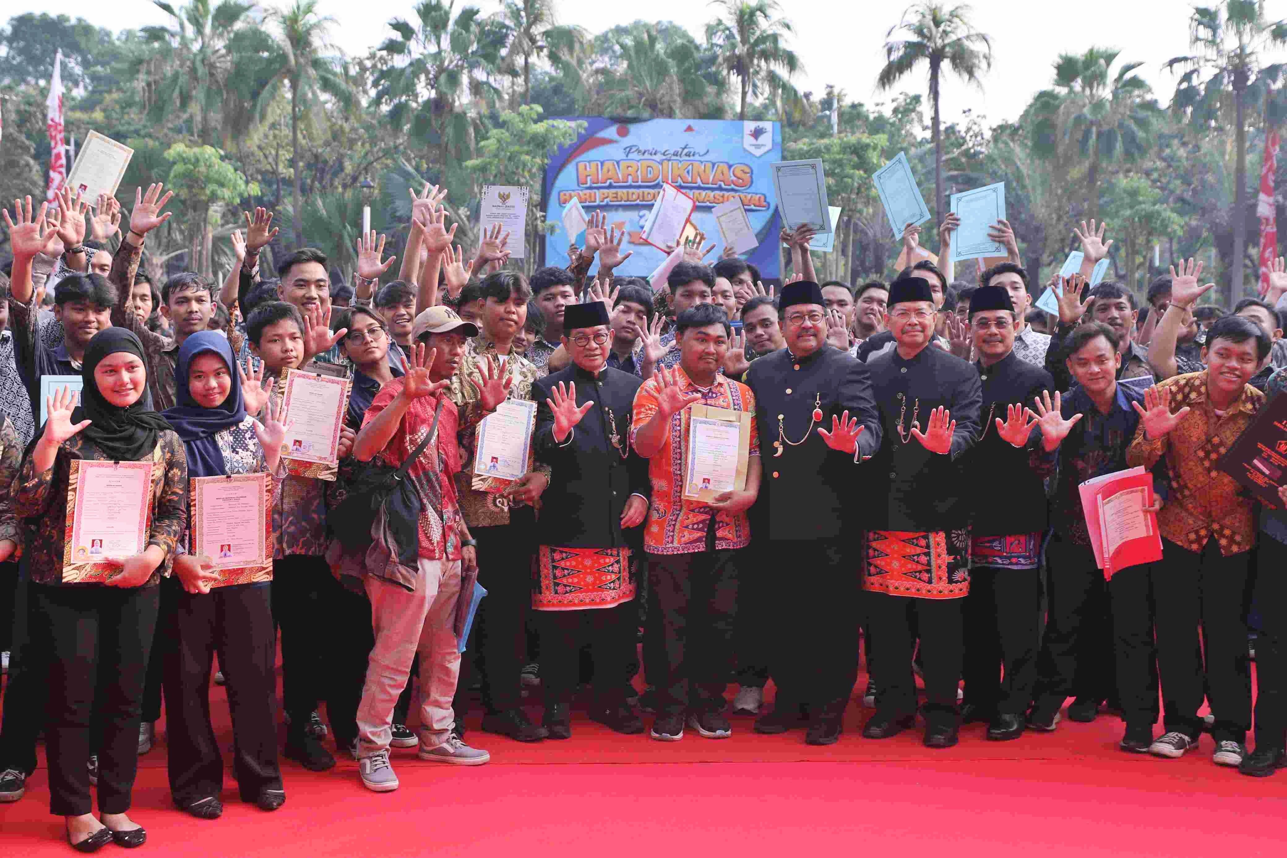 Pemerintah Provinsi (Pemprov) DKI Jakarta menyerahkan ijazah yang sebelumnya tertahan akibat kendala biaya, bertepatan dengan upacara peringatan Hari Pendidikan Nasional (Hardiknas) 2025 yang digelar di Halaman Balai Kota pada Jumat (2/5/2025). Foto : Istimewa/ Pemprov DKI Jakarta