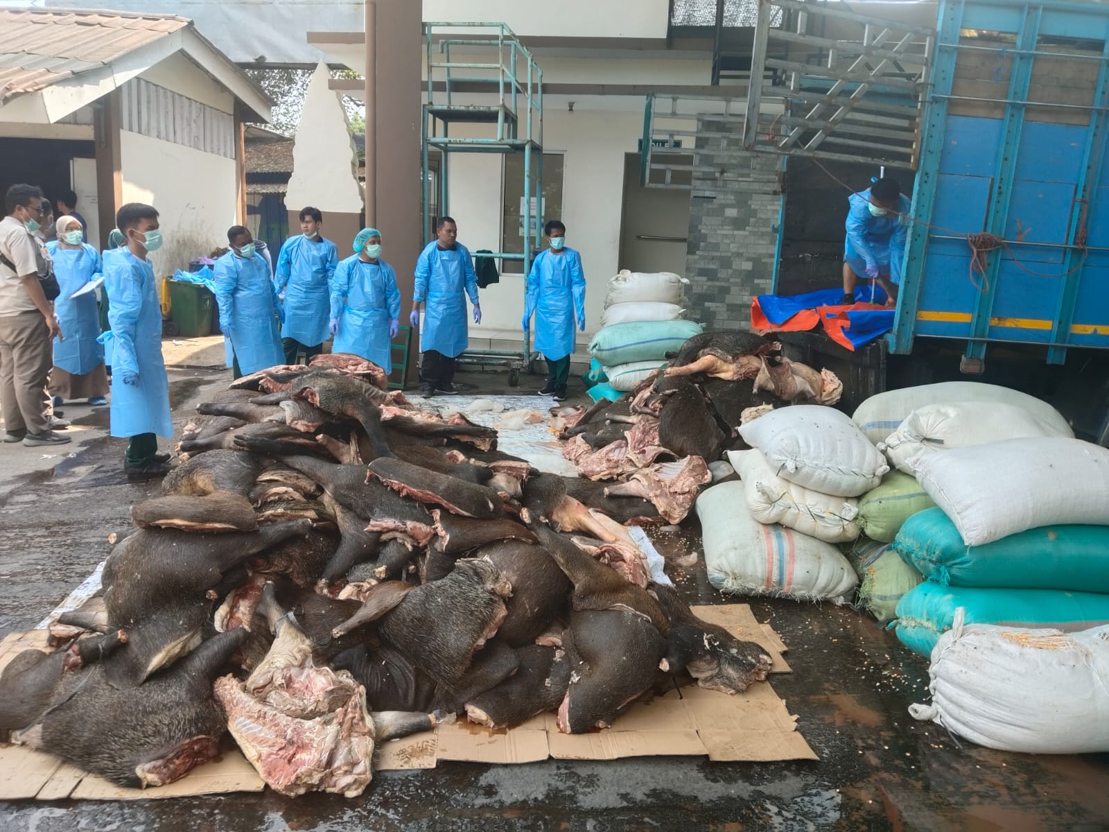Petugas BKHIT Banten Saat Amankan Penyelundupan 2,9 Ton Daging Celeng Ilegal