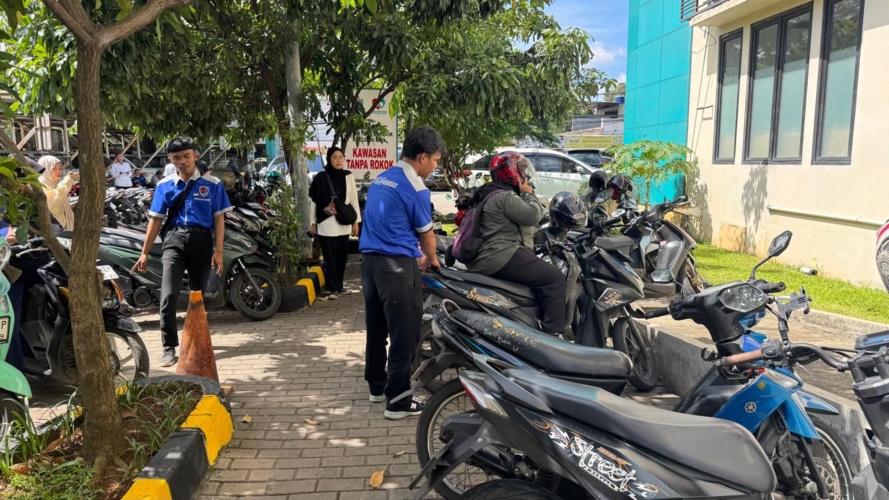 Petugas Tengah Membantu Pengunjung di Lahan Parkir RSU Tangsel