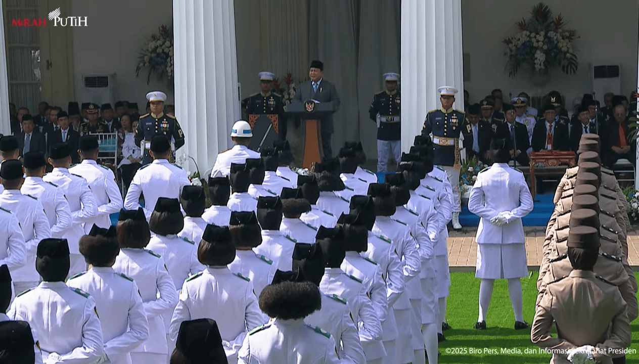 Presiden Republik Indonesia (RI) Prabowo Subianto saat menjadi Inspektur Upacara peringatan Hari Lahir Pancasila 2025 di Lapangan Upacara Gedung Pancasila, Jakarta Pusat, Senin (2/6/2025). Foto : Tangkapan layar YouTube Sekretariat Presiden