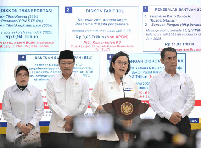 Terkait itu, Menteri Keuangan (Menkeu) Sri Mulyani menyampaikan bahwa stimulus tersebut mencakup lima program utama: diskon transportasi, diskon tarif tol, tambahan bansos, Bantuan Subsidi Upah (BSU), serta perpanjangan diskon iuran Jaminan Kecelakaan Kerja (JKK).