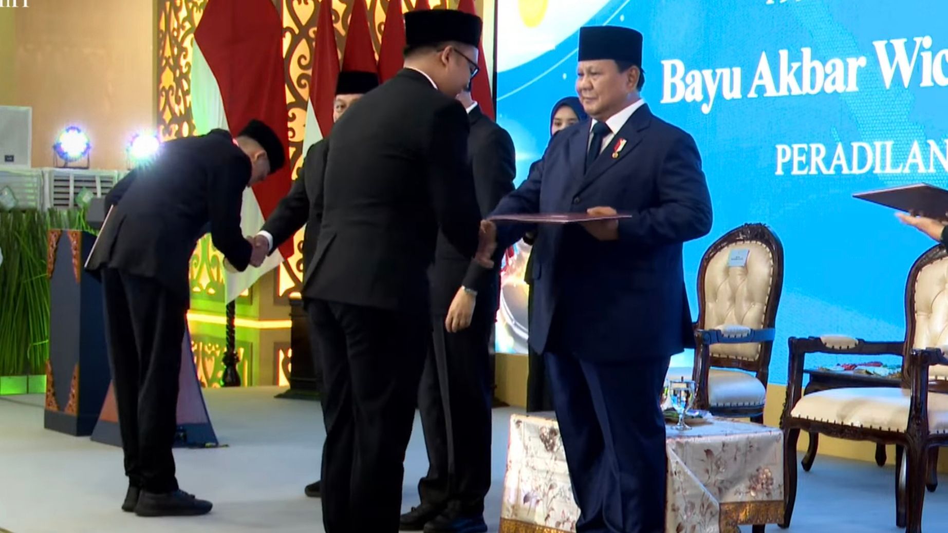 Presiden Prabowo Subianto saat mengukuhkan 1.451 hakim di Mahkamah Agung. Foto Sekretariat Presiden