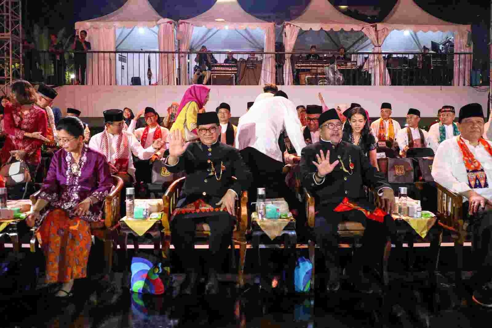 Gubernur DKI Jakarta, Pramono Anung Wibowo bersama Wakil Gubernur Rano Karno saat malam puncak perayaan Hari Ulang Tahun (HUT) ke-498 Kota Jakarta di Taman Lapangan Banteng, Jakarta Pusat, pada Minggu (22/6) malam. Foto : Istimewa/ Pemprov DKI Jakarta