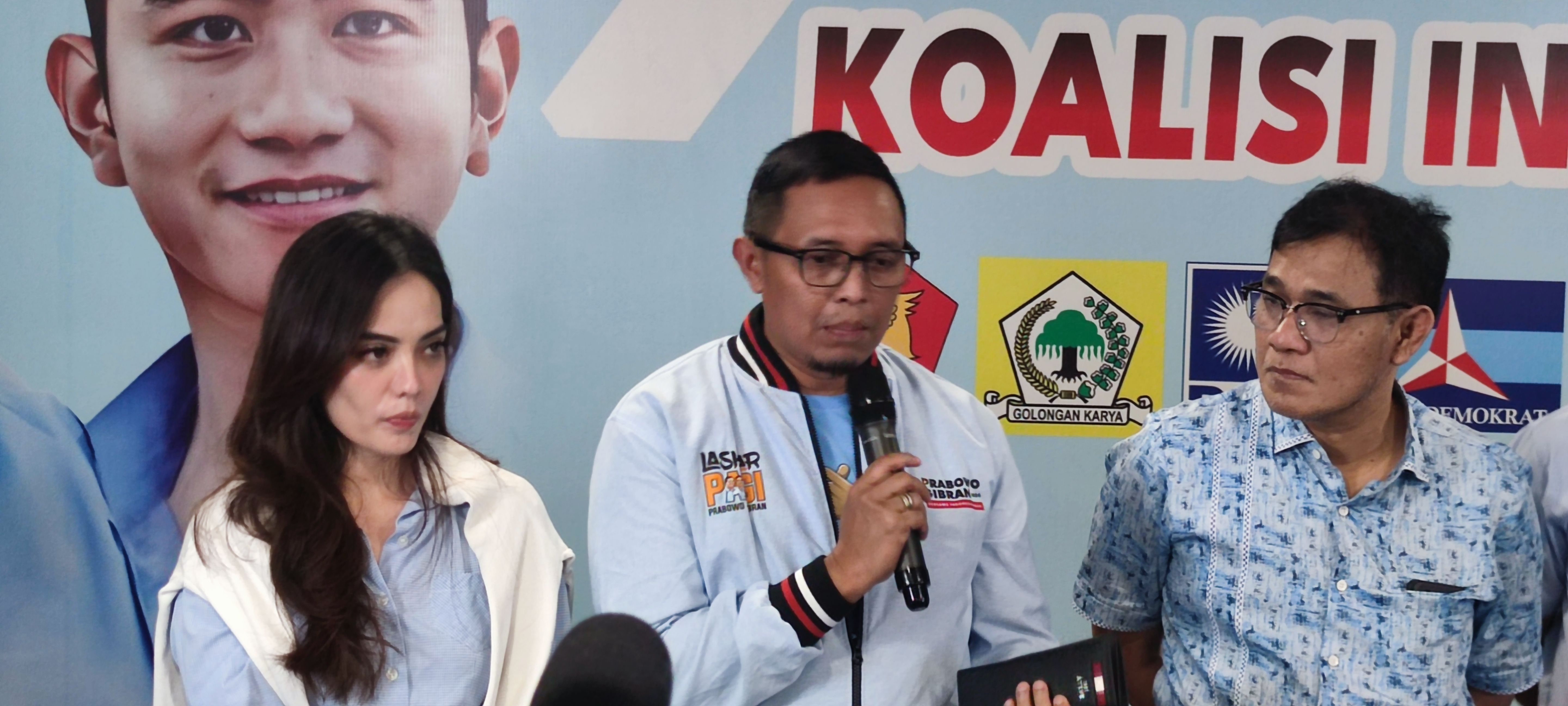 Juru bicara TKN Prabowo-Gibran, Hasan Nasbi saat menggelar konferensi pers di Markas Relawan TKN, Slipi, Jakarta Barat. Foto: M Julnis Firmansyah