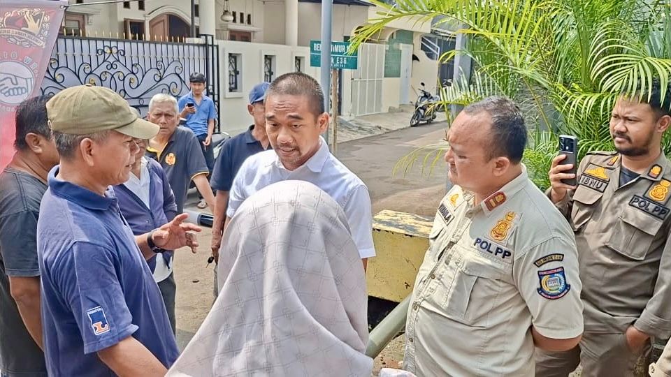 Tangsel, tvrijakartanews - Warga Benda Baru, Kecamatan Pamulang, menghadang petugas Satpol PP yang berencana membongkar portal penutup akses menuju SMA Negeri 3 Tangerang Selatan (Tangsel), pada Kamis (3/7/2025).
