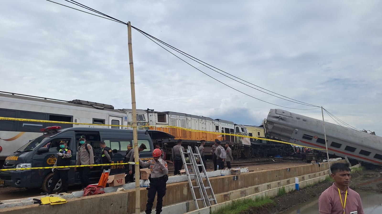 Puluhan orang menjadi korban luka-luka dalam peristiwa tabrakan kereta api Turangga vs KA Lokal Bandung Raya yang terjadi di Petak Jalan Haurpugur-Cicalengka, Kabupaten Bandung, Jumat (5/1/2024) pagi.