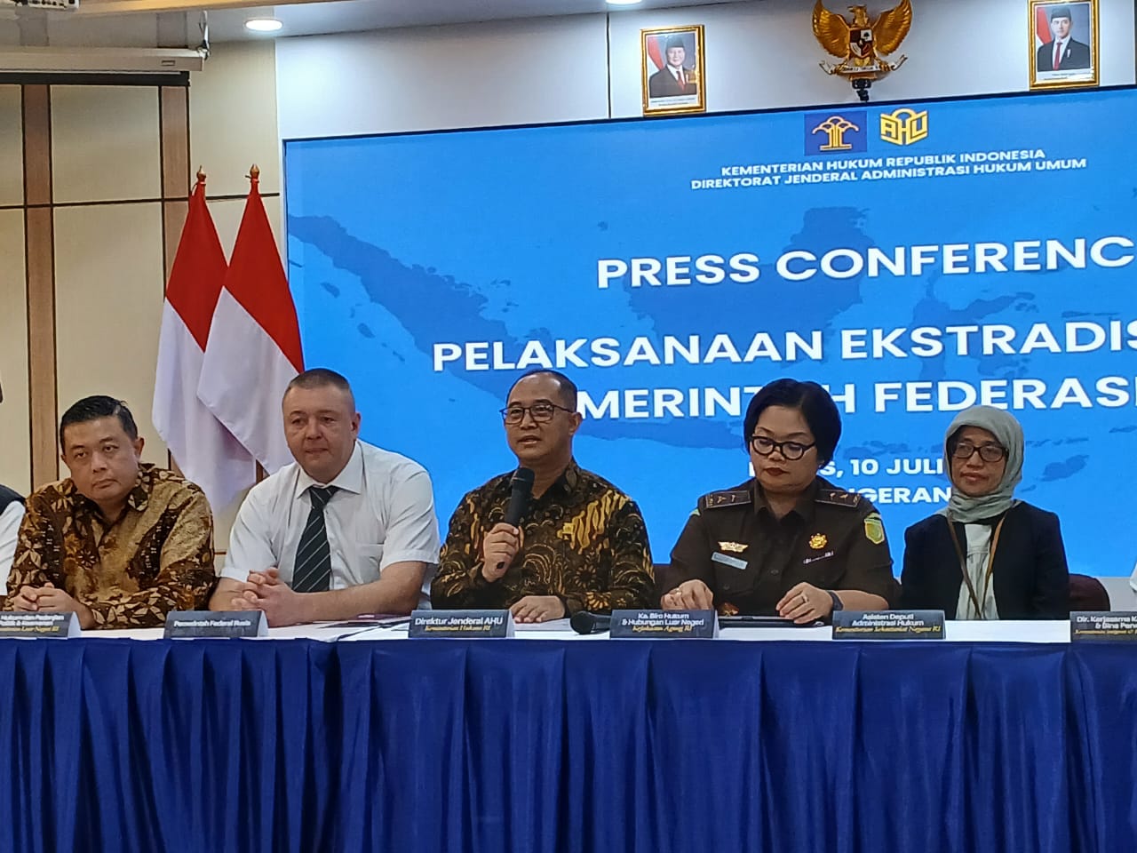 Tangerang, tvrijakartanews - Pemerintah Republik Indonesia mengabulkan permintaan negara Federasi Rusia untuk mengembalikan AVZ, warganya yang menjadi buronan interpol. Permintaan ekstradisi ini sebenarnya sudah diajukan sejak Juni 2022, namun baru dikabulkan setelah diterbtikan Keputusan Presiden Republik Indonesia Nomor 12 Tahun 2025 tertanggal 2 Juni 2025.