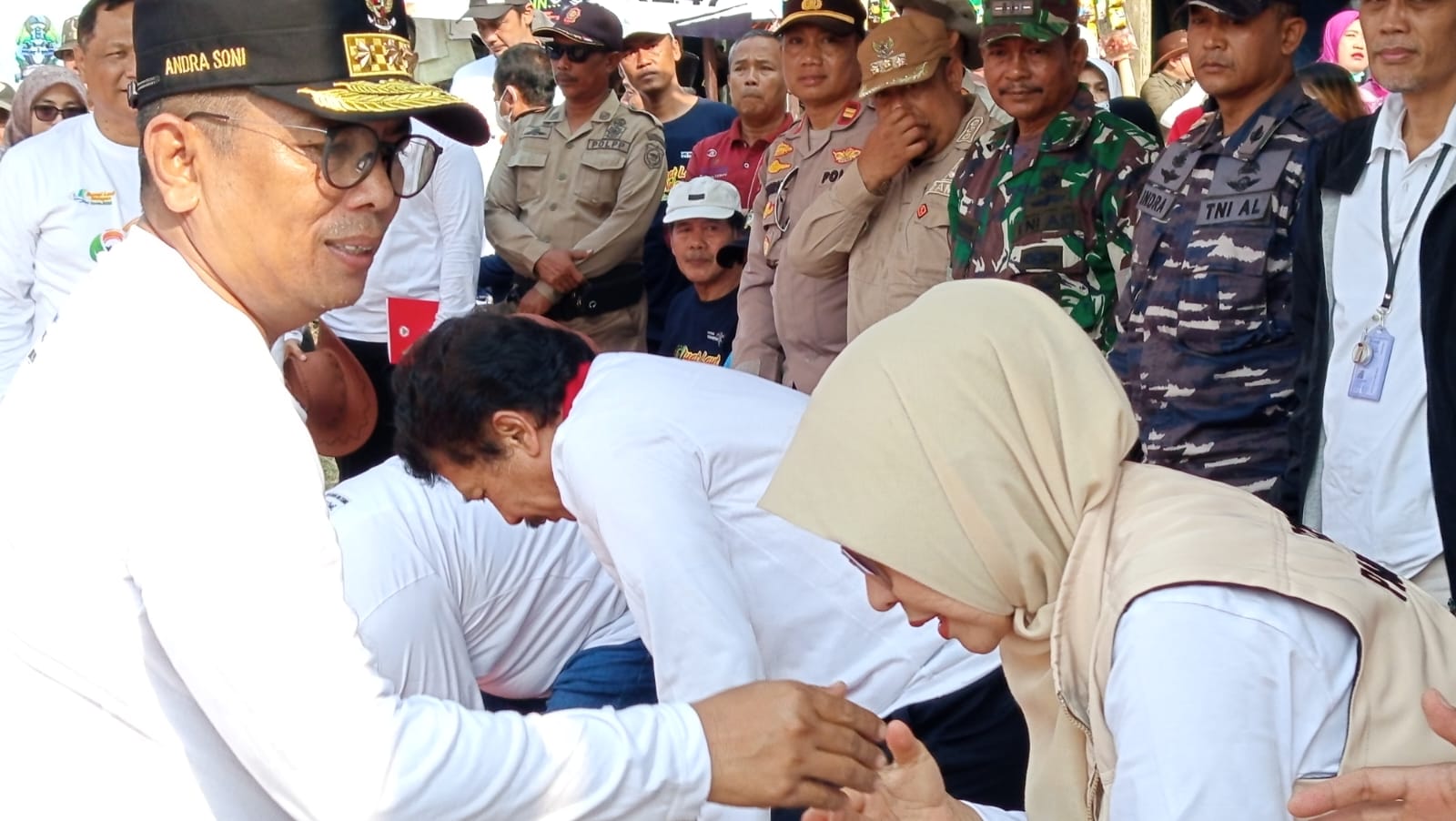 Pandeglang, tvrijakartanews - Gubernur Banten, Andra Soni, hadir secara langsung dalam perayaan Ruat Laut Carita yang digelar di Pantai Carita, Kecamatan Carita, Kabupaten Pandeglang. Tradisi syukur laut ini digelar dalam rangka memperingati Hari Jadi Carita ke-47, dan menjadi momen penting puncak rangkaian agenda budaya, olahraga, dan pariwisata setempat.