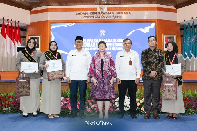 Wakil Menteri Pendidikan Tinggi, Sains, dan Teknologi (Wamendiktisaintek) Stella Christie, dalam acara Pelepasan Mahasiswa Program Pendidikan Ilmu Kepegawaian (PIK) Angkatan XIV di Aula Kantor Pusat Badan Kepegawaian Negara (BKN), pada Rabu (16/7). Foto : Istimewa/ Kemdiktisaintek RI