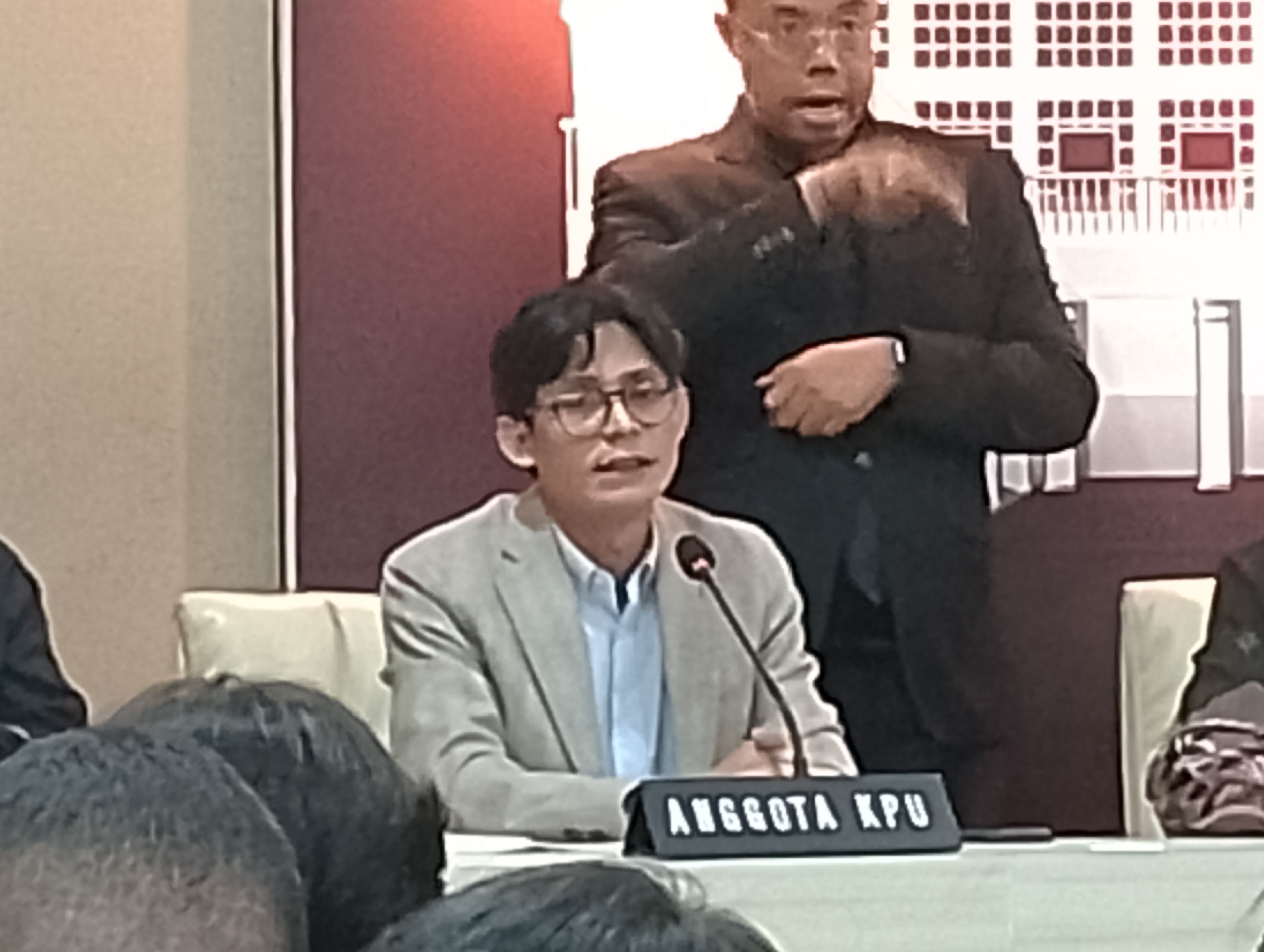 Anggota KPU, Augus Mellaz saat konferensi pers di Gedung KPU, Jakarta. Foto: Achmad Basofi