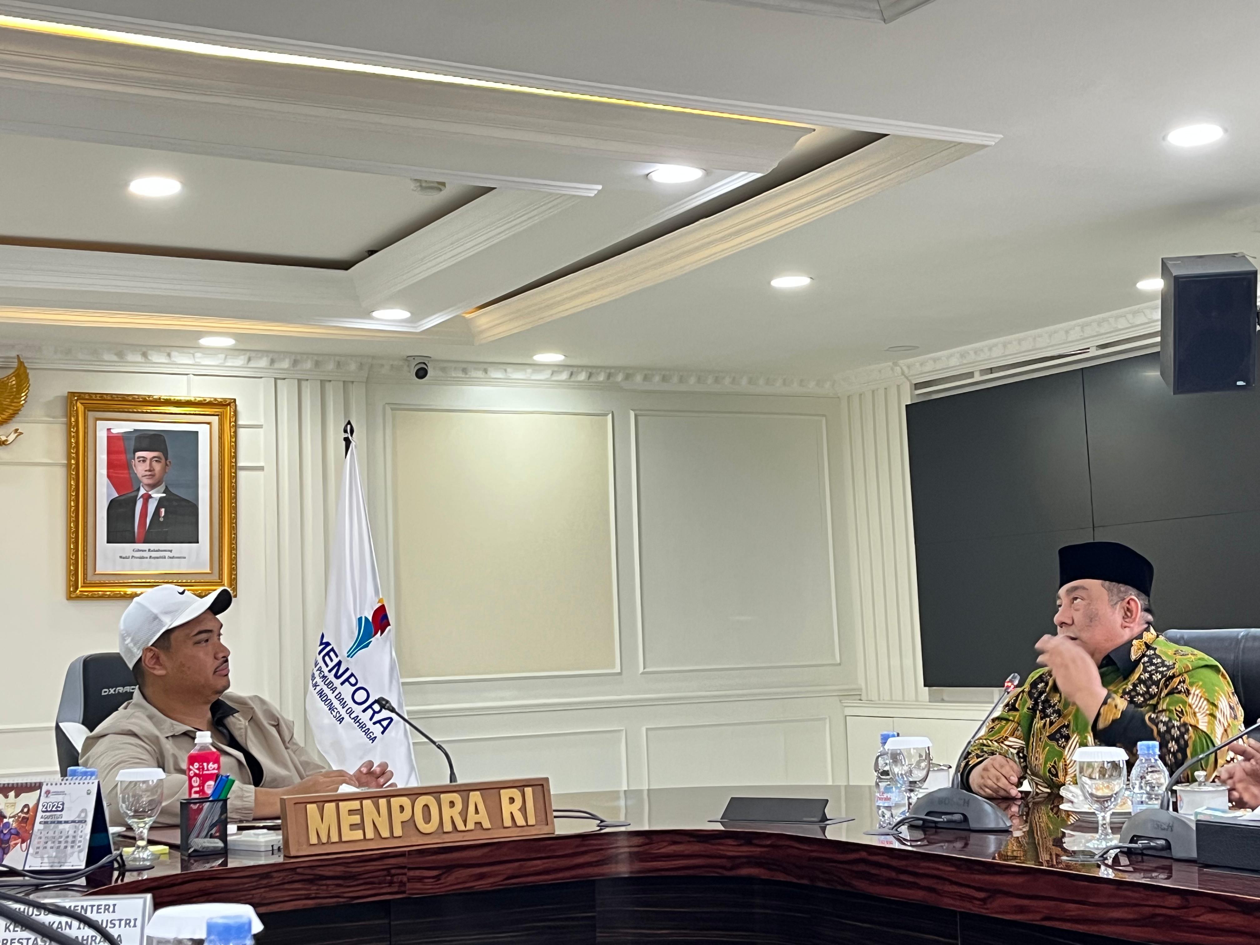 Menpora Dito turut didampingi oleh Staf Khusus Bidang Percepatan Inovasi Pemuda Hasintya Saraswati dan Tenaga Ahli Bidang Penguatan Peran Kepemudaan Muhammad Balyah dalam audiensi tersebut.