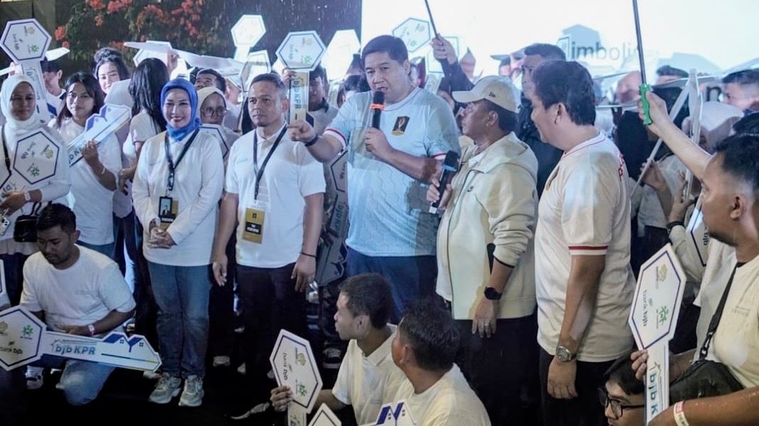 Menteri PKP Maruarar Sirait (Berdiri Tengah) Menghadiri Kegiatan Bank BJB Menyerahkan 100 Kunci Rumah Subsidi ke Debitur FLPP