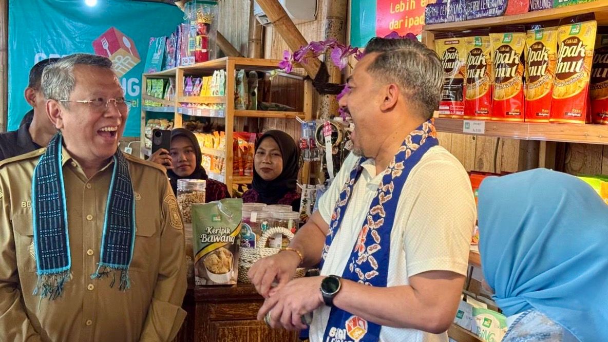 Wali Kota Tangsel Benyamin Davnie (Kiri) Mendampingi Menteri UMKM Maman Abdurrahman (Kanan) di Gerai Lengkong, Serpong Utara