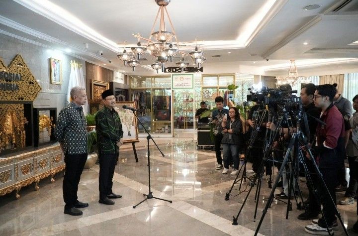 Menteri Sosial (Mensos) Saifullah Yusuf atau Gus Ipul dan Wamensos Agus Jabo Priyono saat konferensi pers di Kantor Kementerian Sosial, pada Kamis (31/7/2025). Foto : Istimewa/ Kemensos