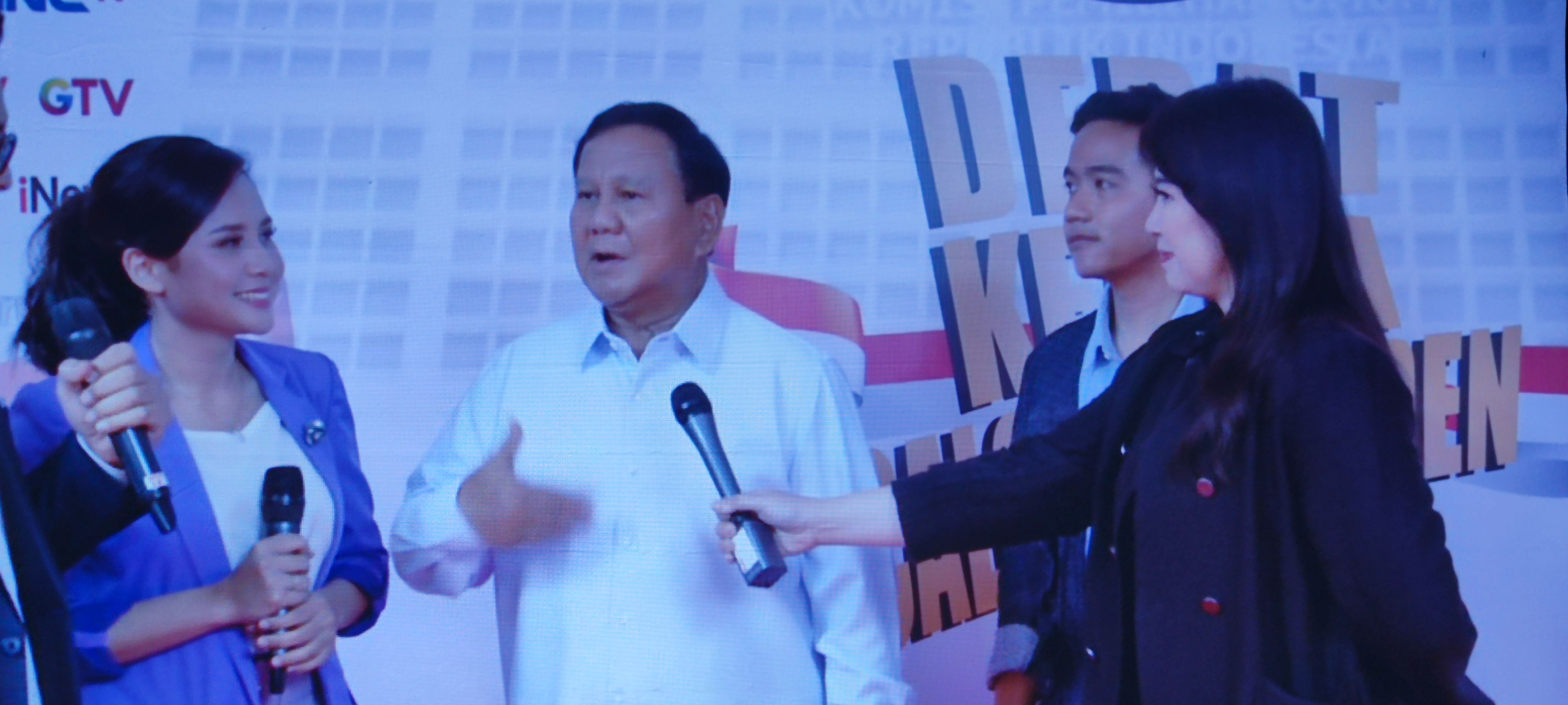 Debat capres malam ini digelar di Istora Senayan, Jakarta Pusat dan disiarkan langsung oleh lima stasiun televisi penyelenggara, yakni MNC TV, RCTI, Inews, Global TV dan Garuda TV. KPU mendapuk Aryo Ardi dan Anisa Basuki sebagai moderator.
