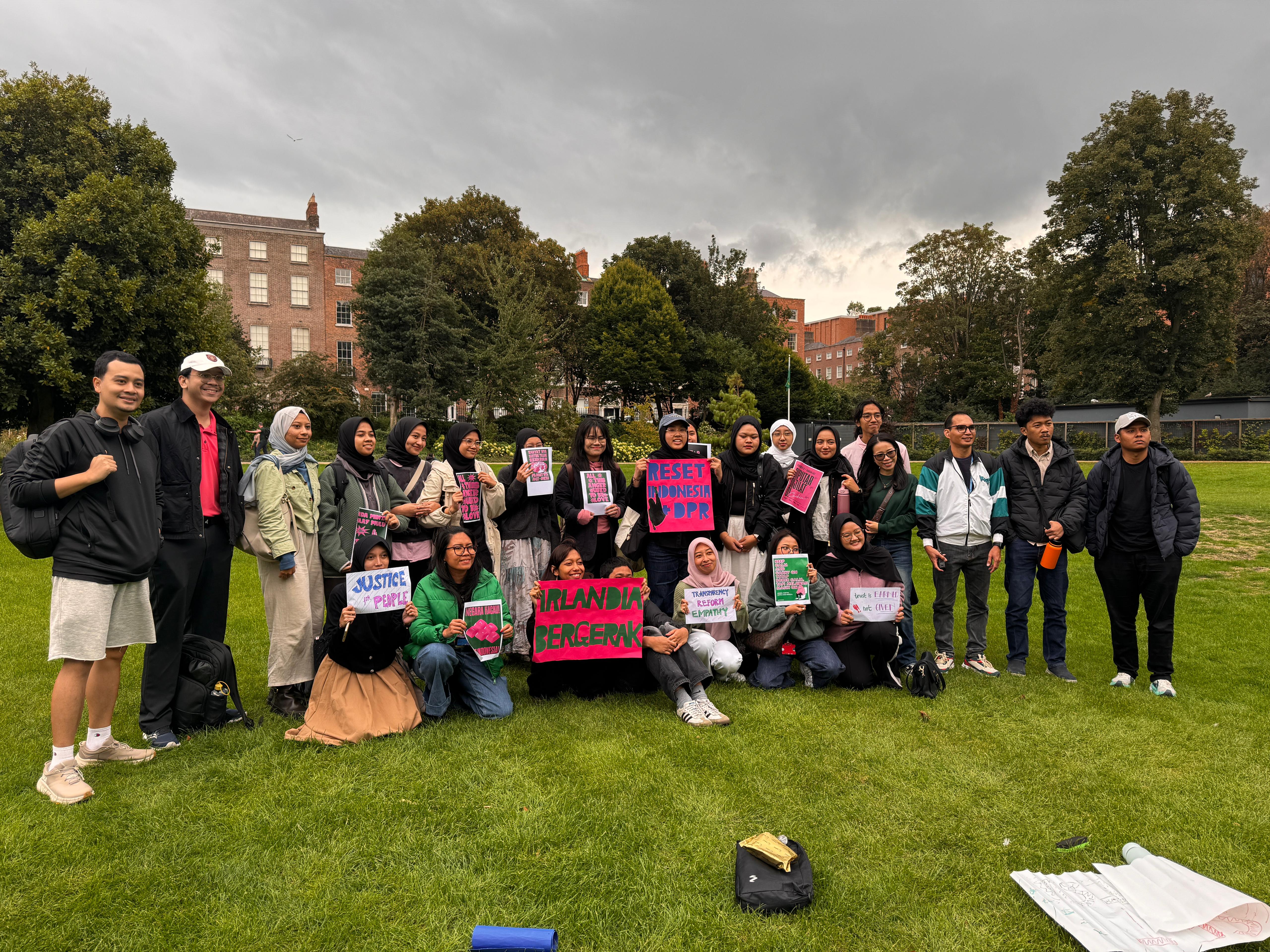 Sementara itu, agenda kedua yang berfokus pada isu-isu Indonesia berlangsung di Merrion Square Park. Acara ini berbentuk diskusi terbuka dengan suasana santai, bukan aksi unjuk rasa. Kegiatan diawali dengan penampilan independen, dilanjutkan pembacaan tuntutan yang kemudian menjadi pijakan dalam sesi diskusi interaktif. Acara ditutup dengan doa bersama sebagai bentuk dukungan moral dan spiritual.