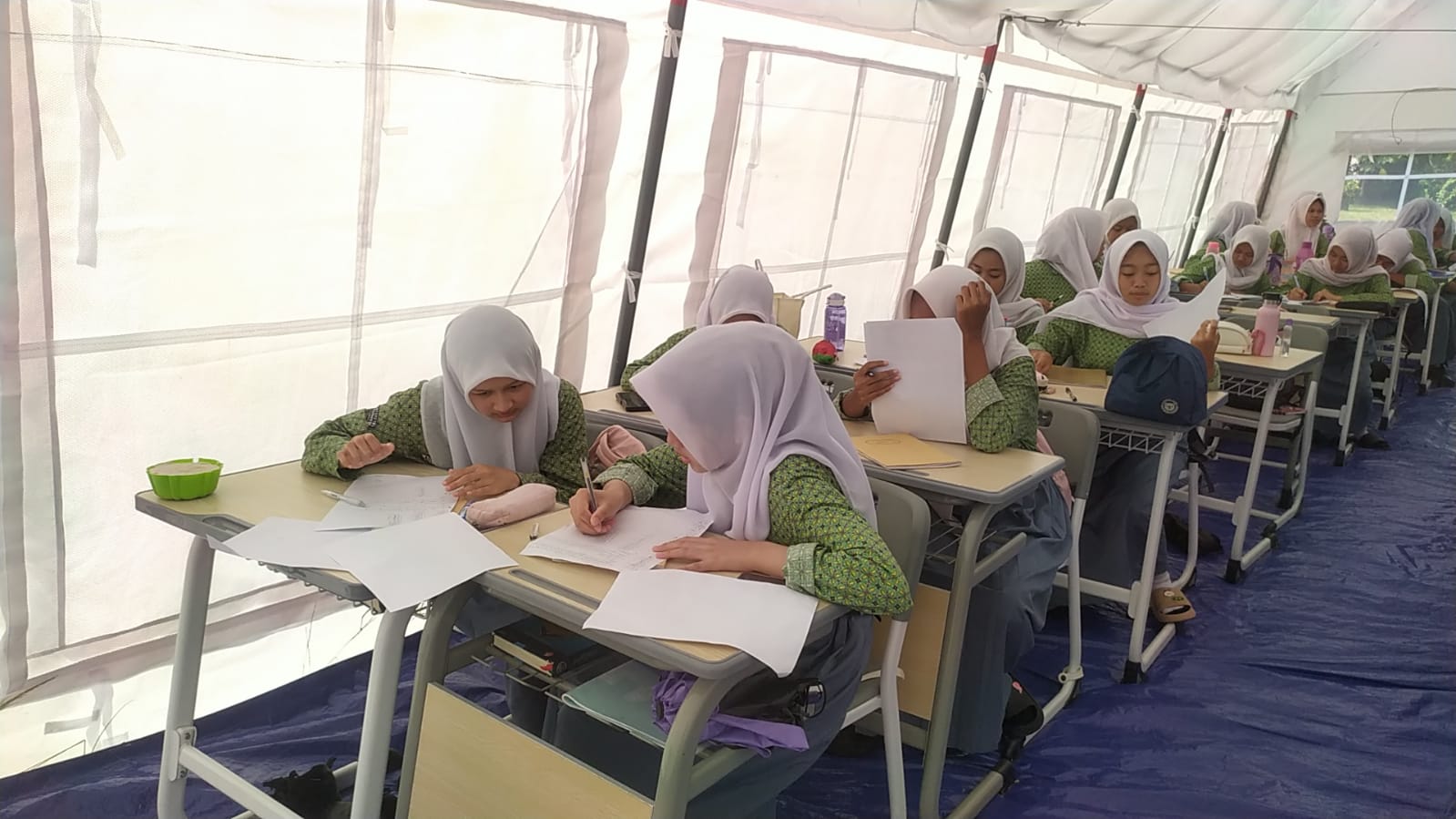 “Ini kondisi darurat karena kelas masih dalam proses rehabilitasi. Alhamdulillah meskipun tidak bisa optimal, anak-anak tetap bisa mengikuti pelajaran,” ujarnya, Selasa, 16 September 2025.