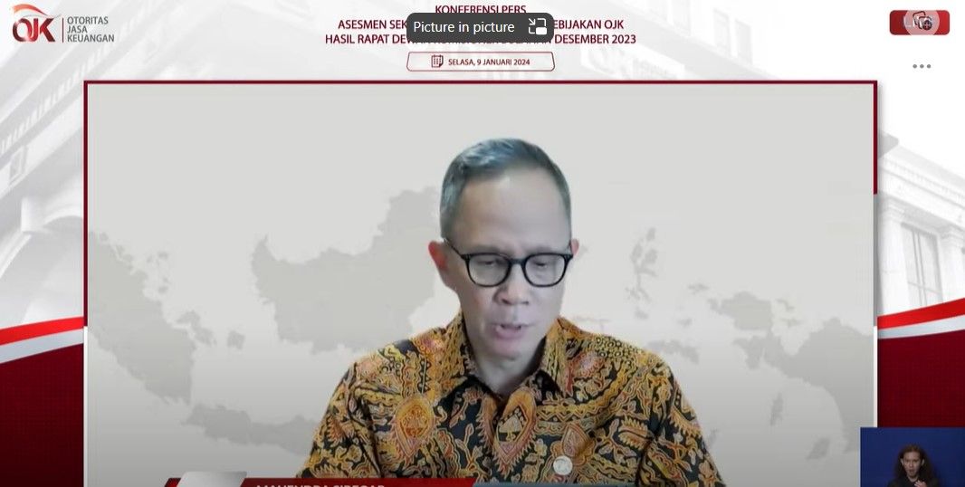 “Indikator perekonomian secara global menunjukkan moderasi atau perlambatan pertumbuhan di beberapa negara, khususnya di negara-negara Uni Eropa dan Tiongkok. Perlambatan pertumbuhan ekonomi mendorong inflasi turun mendekati target inflasi, sehingga memberikan ruang bagi bank sentral untuk lebih akomodatif,” kata Ketua Dewan Komisioner Otoritas Jasa Keuangan (OJK) Mahendra Siregar dalam Konferensi Pers Asesmen Sektor Jasa Keuangan & Kebijakan OJK Hasil Rapat Dewan Komisioner (RDK) Bulanan Desember 2023 yang diadakan secara virtual, Jakarta, Selasa (9/1/2024).