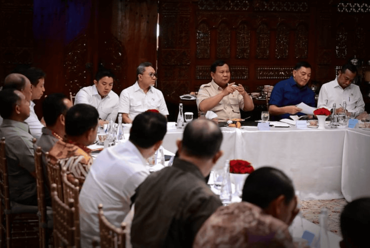 Menteri Sekretaris Negara (Mensesneg) Prasetyo mengatakan pertemuan berlangsung hampir tiga jam. Menurutnya, Presiden ingin mendapatkan update setelah baru saja pulang dari lawatan luar negeri selama sepekan.