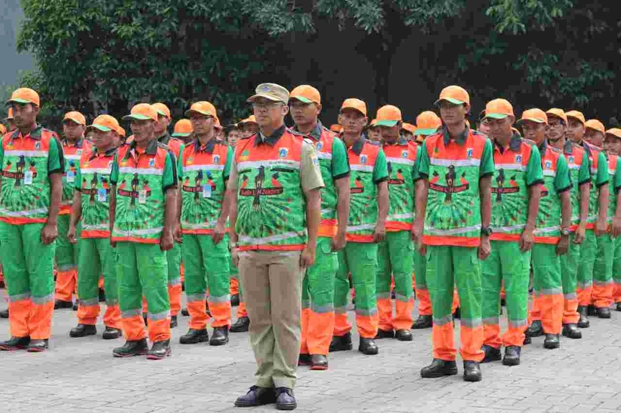 Petugas yang dikerahkan berasal dari lima Suku Dinas Lingkungan Hidup Kota Administrasi serta Unit Penanganan Sampah Badan Air (UPS BA).