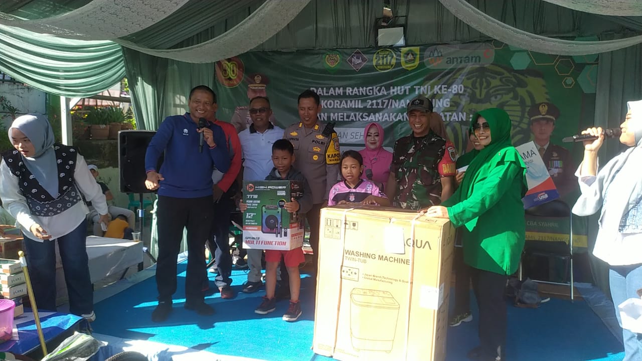Bogor, tvrijakartanews - Dalam rangka memperingati HUT ke-80 Tentara Nasional Indonesia (TNI), Koramil 2117 Nanggung, Kabupaten Bogor menggelar sejumlah kegiatan sosial yang melibatkan masyarakat, unsur Forkopimcam, dan PT Antam Tbk.