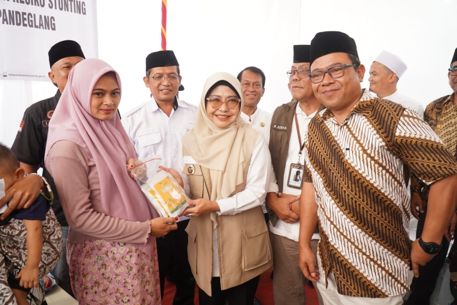 “Penurunan stunting harus simultan dan bersama, di antaranya Badan Amil Zakat Nasional (Baznas) dan PT Alfindo yang saat ini memberikan bantuan paket nutrisi bagi 150 sasaran di Desa Wirasinga dan Desa Rancabugel Kecamatan Mekarjaya,” kata Bupati Pandeglang Dewi Setiani saat kegiatan pemberian bantuan paket nutrisi dan olahan daging Dam Haji untuk lokus sasaran stunting di Desa Wirasinga, Kecamatan Mekarjaya, Rabu (8/10/2025).