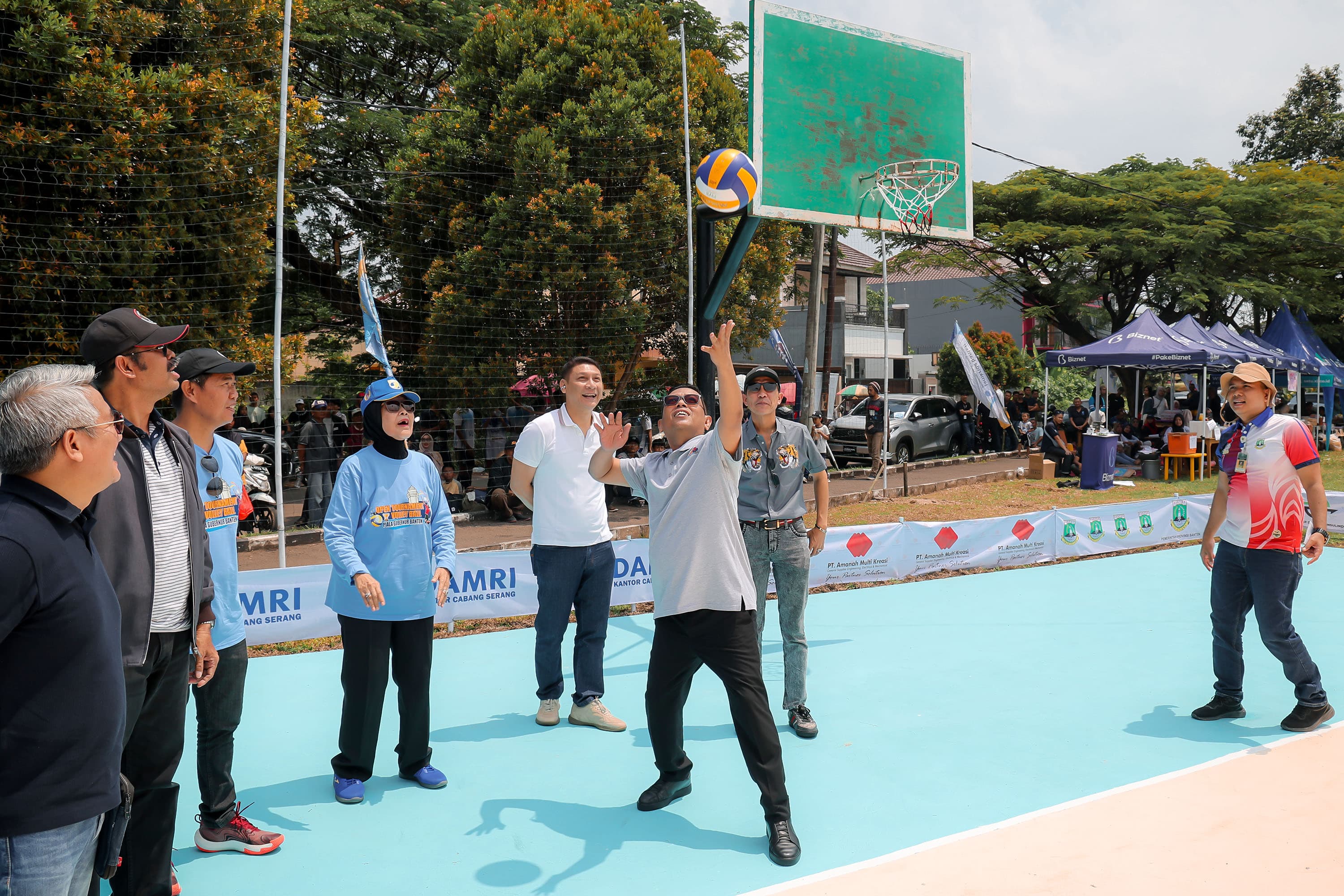 Gubernur Banten Andra Soni Saat Melakukan Pelemparan Bola Volly Tanda Dimulainya Turnamen Volly Piala Gubernur 2025