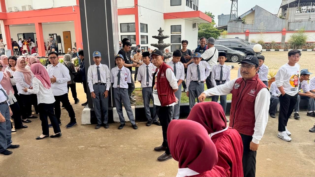 Mensos RI Saifullah Yusuf atau Gus Ipul (Rompi Merah Berkacamata) Menghibur Ratusan Siswa SRMA 33 Tangsel