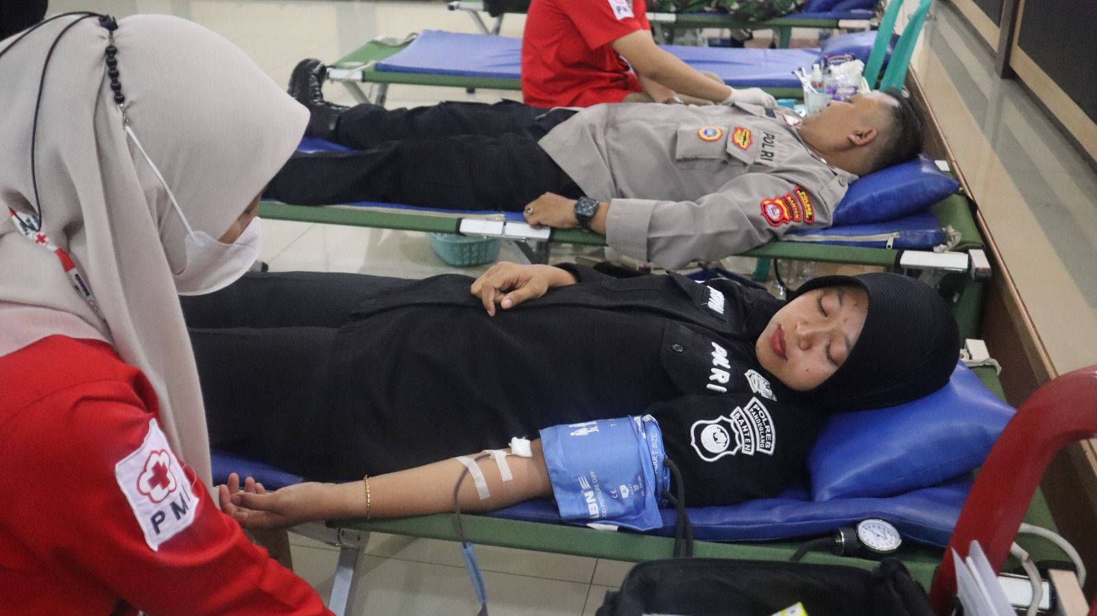 Anggota Polres Pandeglang sedang mengikuti Donor Darah di Aula Mapolres Pandeglang. sumber (22/10/2025).