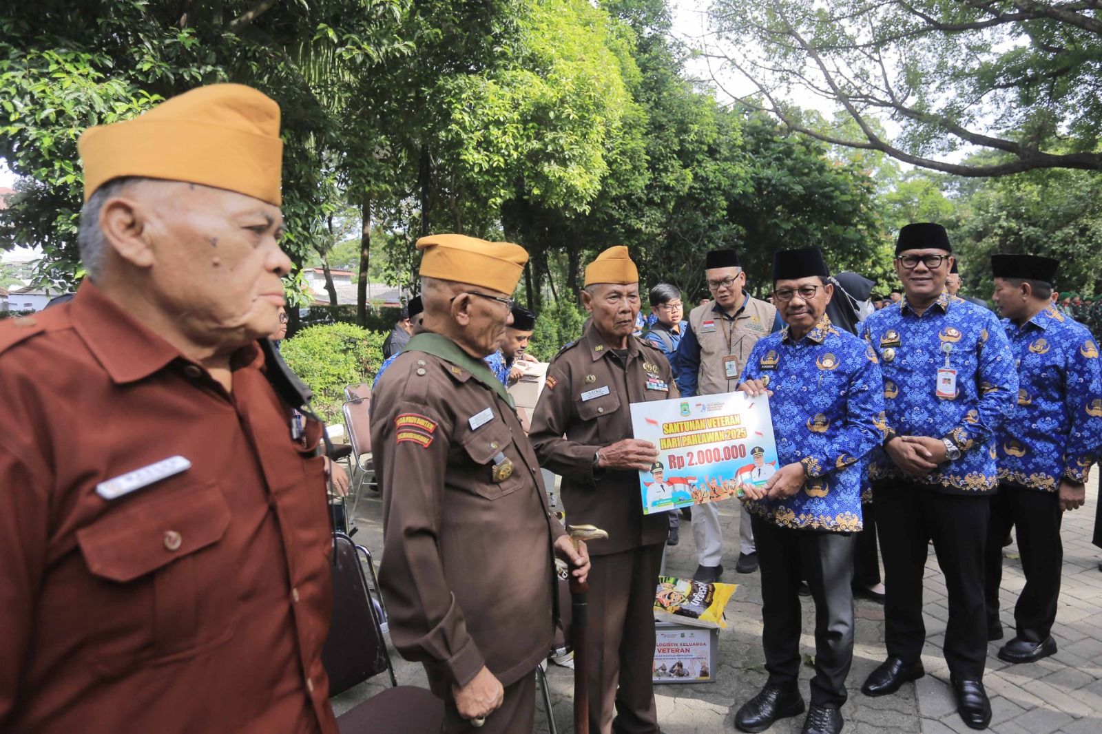 Usai pelaksanaan upacara dan tabur bunga, Pemerintah Kota Tangerang melalui Dinas Sosial dan Baznas Kota Tangerang turut menyerahkan berbagai bantuan sosial kepada para veteran dan keluarga veteran, meliputi kursi roda, alat bantu jalan, alat bantu dengar, santunan uang tunai, serta paket sembako.