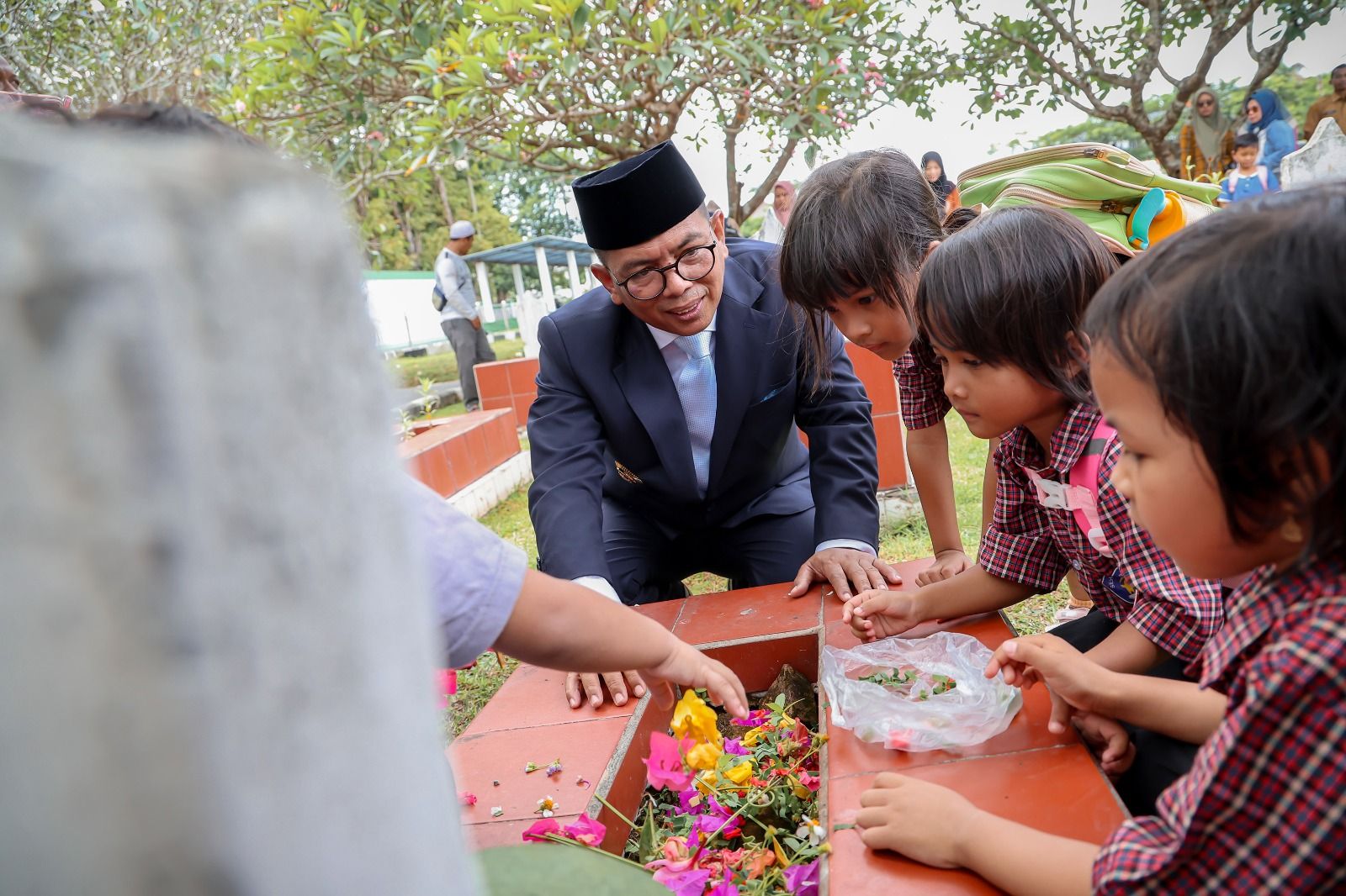 Usai memimpin upacara, Andra Soni mendampingi para pelajar dan siswa PAUD melakukan ziarah dan tabur bunga. Para pelajar berasal dari SMP dan SMA Mardiyuana Kota Serang, sedangkan siswa PAUD berasal dari PAUD Darul Athfal Banten Indah Permai (BIP), PAUD Matahari Kebon Jahe, serta PAUD Sejahtera Walantaka.