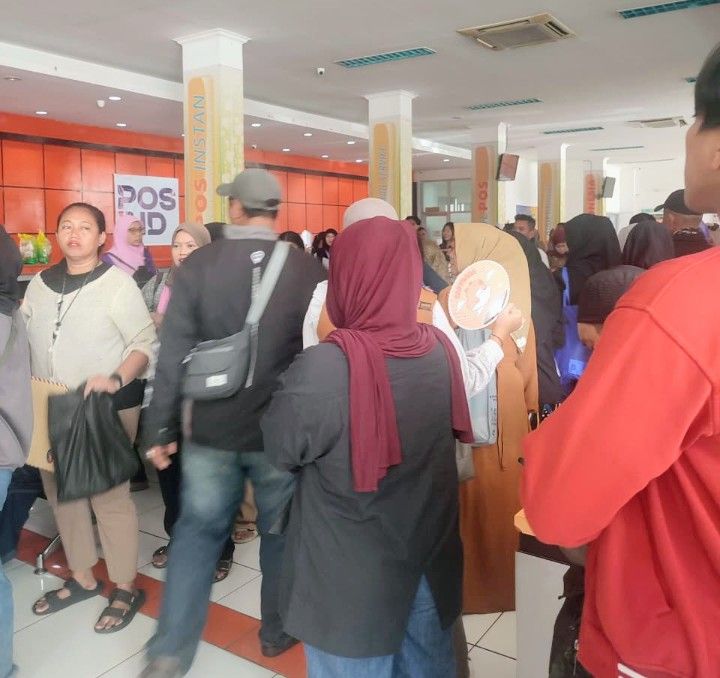 Masyarakat menerima Bantuan Langsung Tunai Sementara (BLTS) melalui kantor PT Pos Indonesia di Jakarta, pada Rabu (26/11). Foto : Achmad Basofi