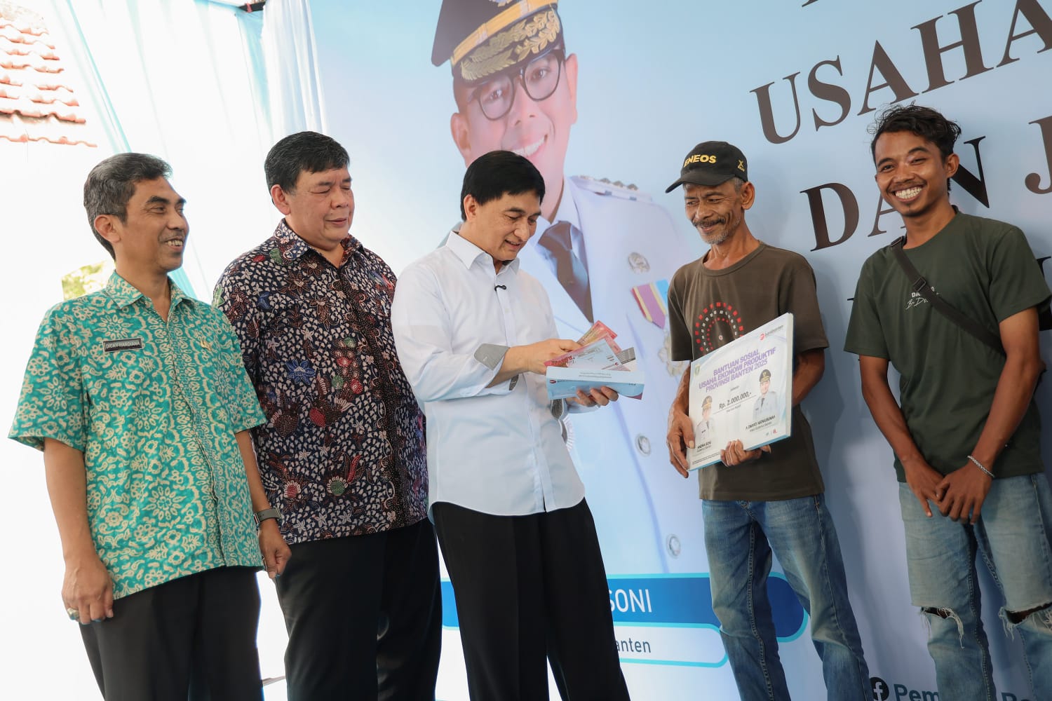 Wakil Gubernur Banten, Dimyati Natakusuma Saat Menyerahkan Bantuan Modal Usaha dan Jaminan Sosial